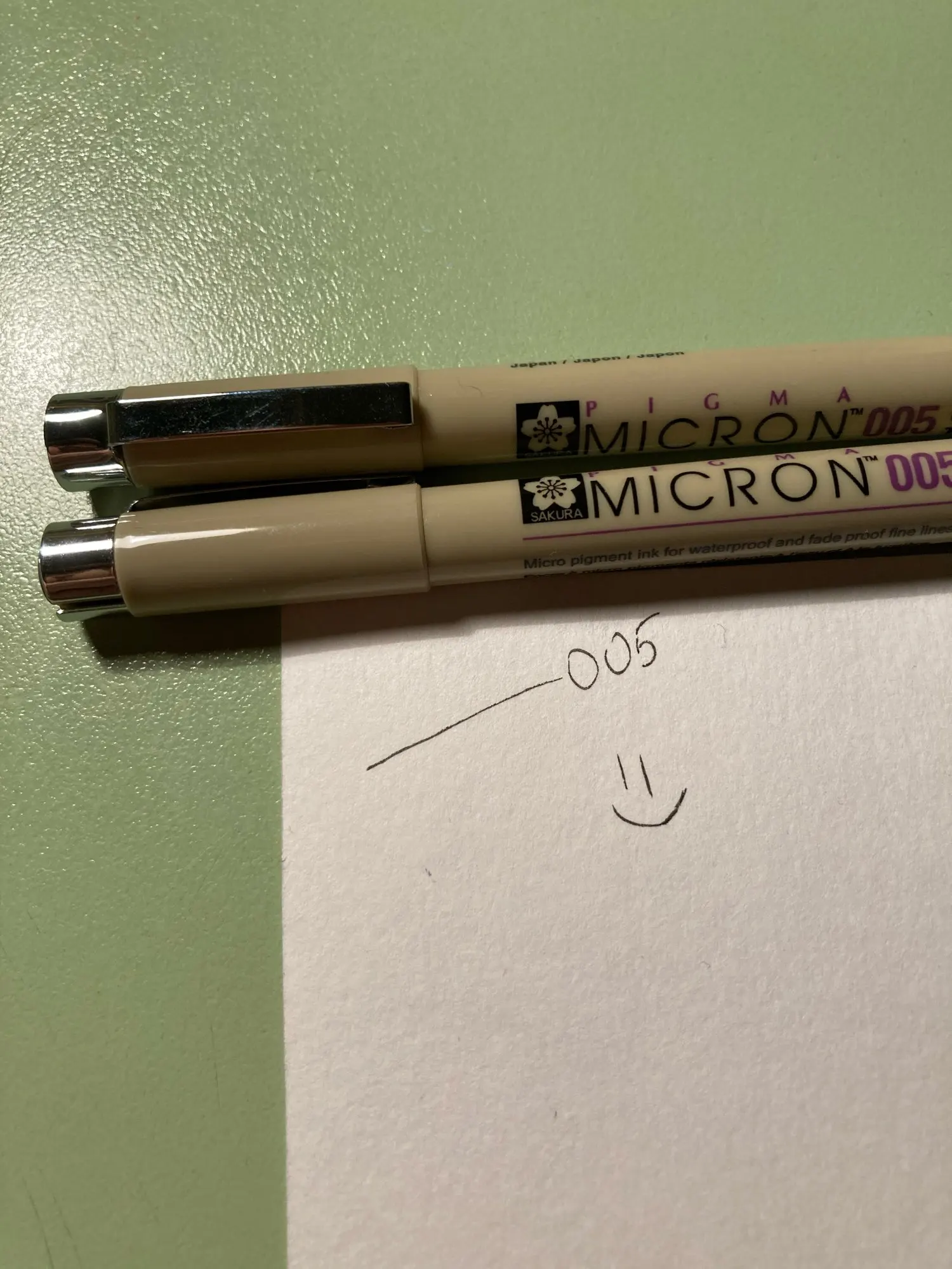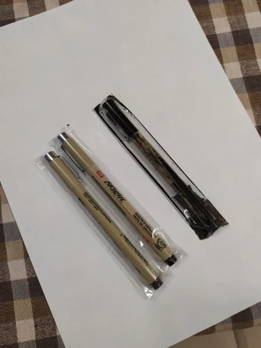 Товар прибыл в течение 2 недель, закажите упаковку в 11 часов. Упаковка была полностью заполнена и хорошо упакована. Проверьте воду, которая предлагает выпуск и отметку PIGMA на вашей официальной странице, сравните ее с другой ручкой, которую у меня есть. Он прошел тест без проблем. Все перья работают, единственный низ был в том, что 005 был немного окрашен, но не влияет на его работу.