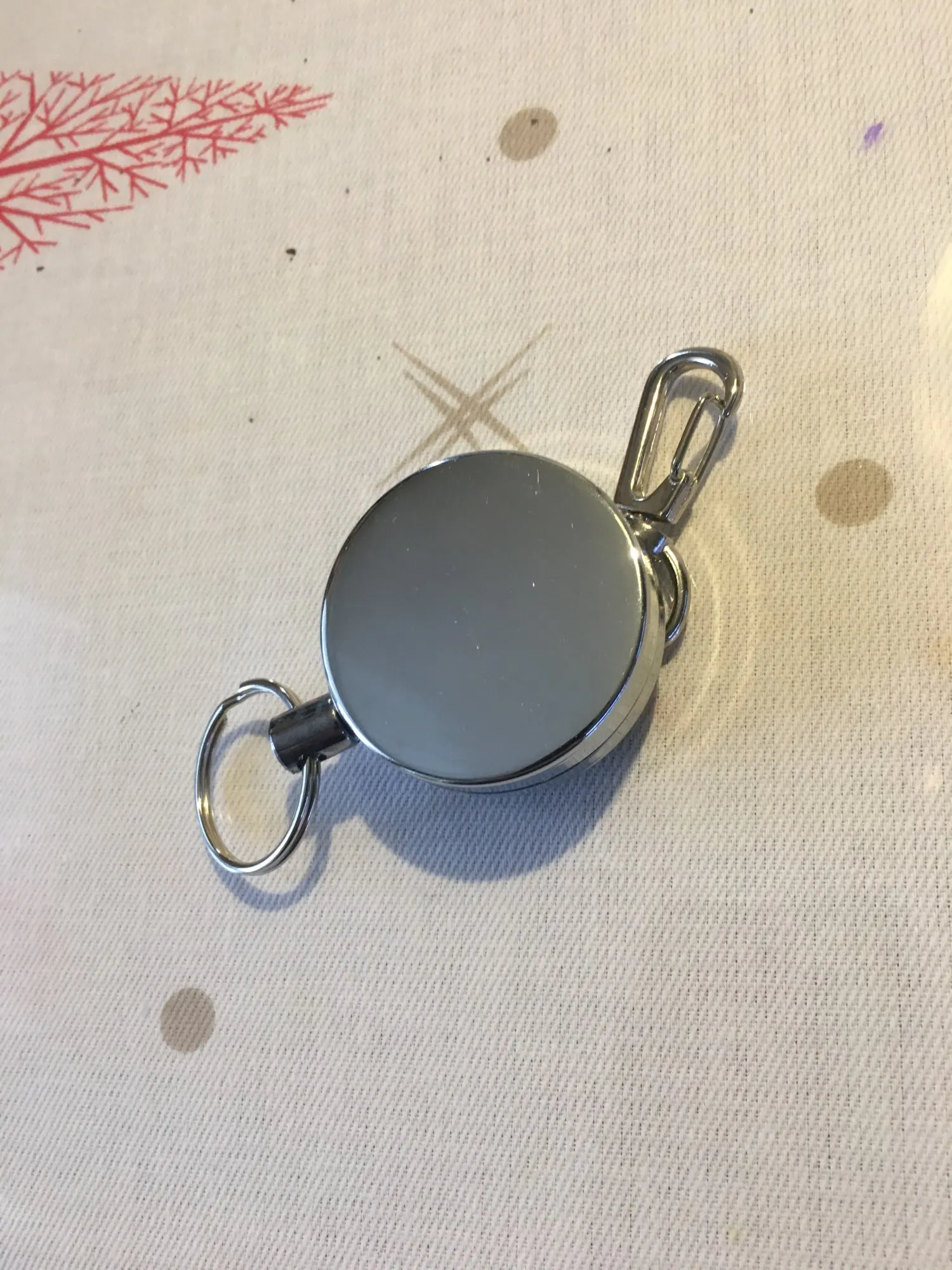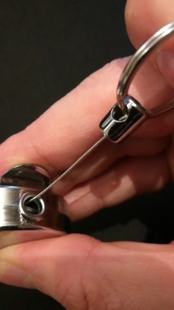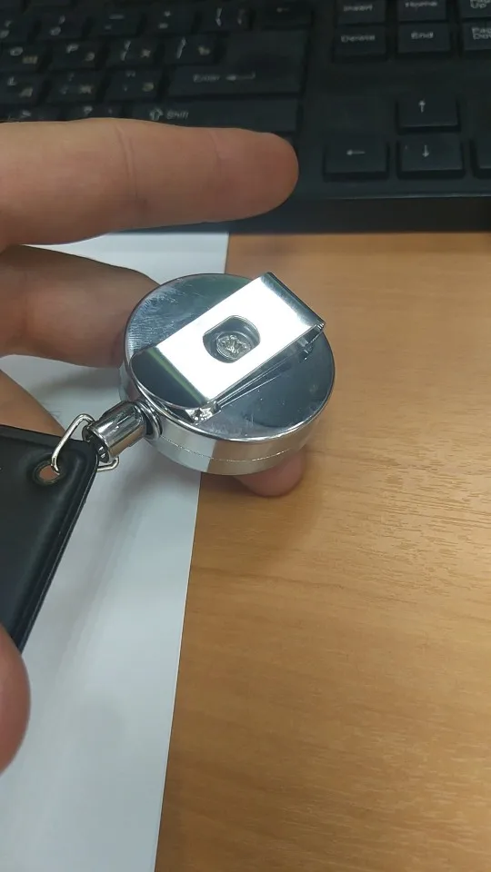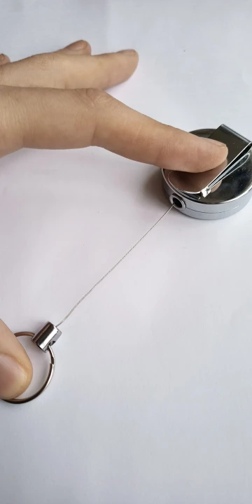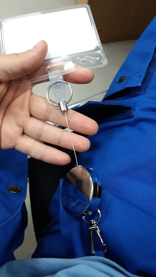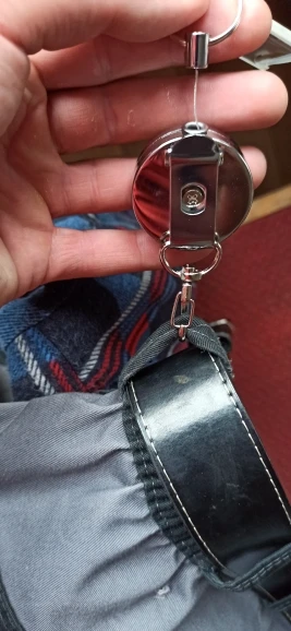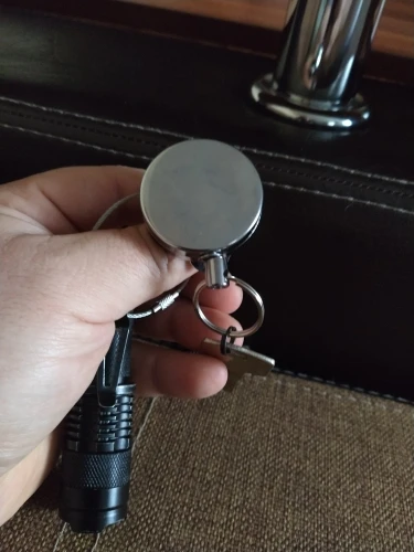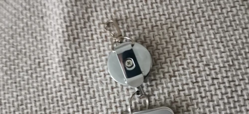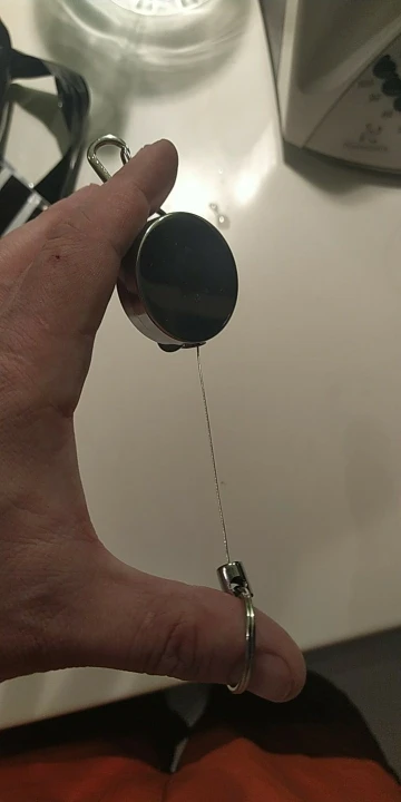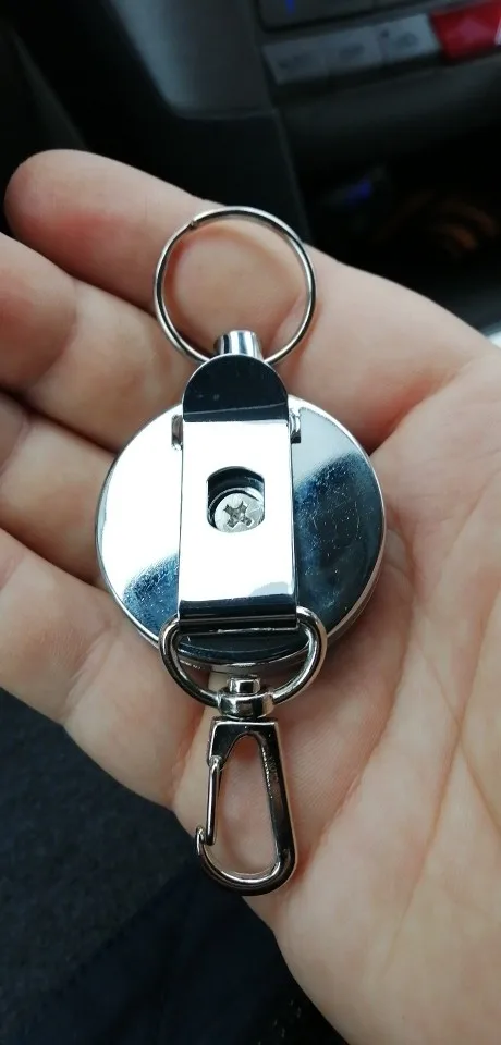 Хорошая штучка, я брала для бейджа, стальной тросик выдвигается прилично, не менее полуметра, на его конце кольцо, можно повесить ключи, есть зажим, можно повесить на ремешок или на пояс, еще есть карабин. Мне все понравилось.