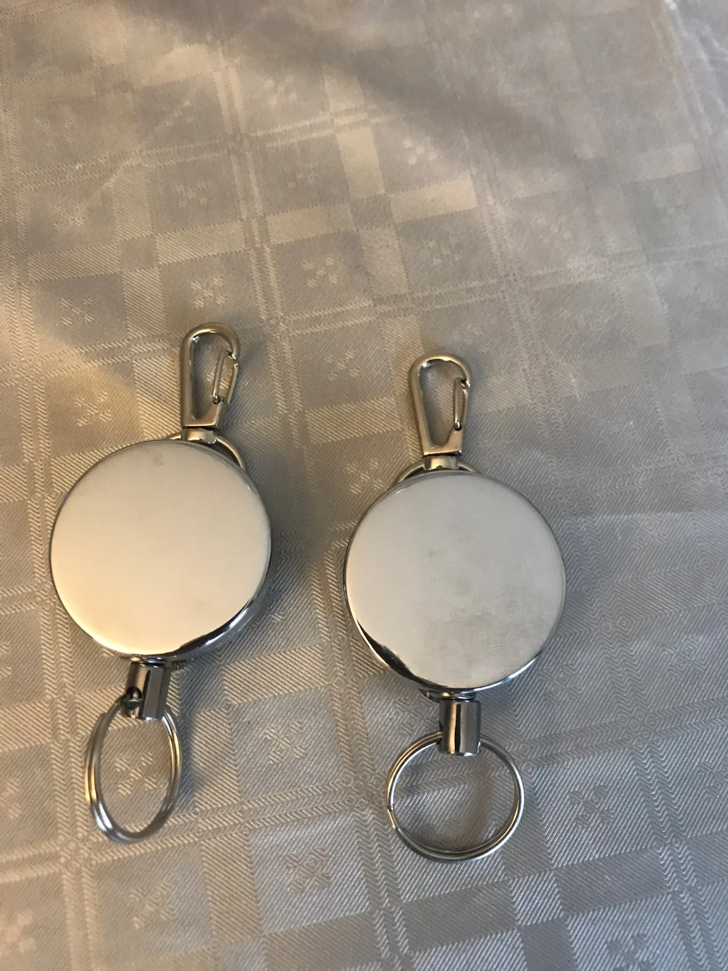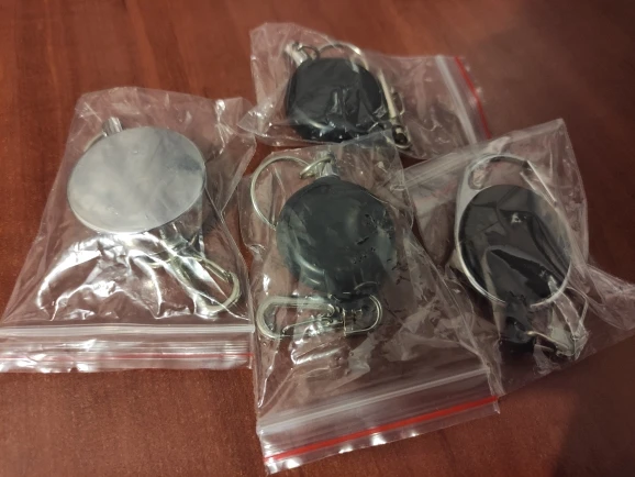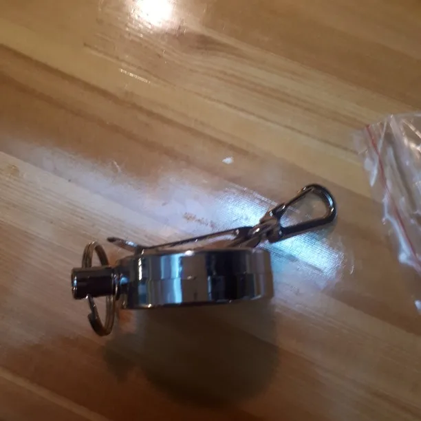 как и хотел, карабин или лапка к куртке а на кольцо рыболовные клещики, очень удобно. рулеткой доволен, собрано вроде хорошо, пружина достаточно сильная, язык карабина сильный! если понадобится, то ещё буду заказывать. в Москву за 3 недели. в пластике не берите, разваливаются даже с бейджиком...