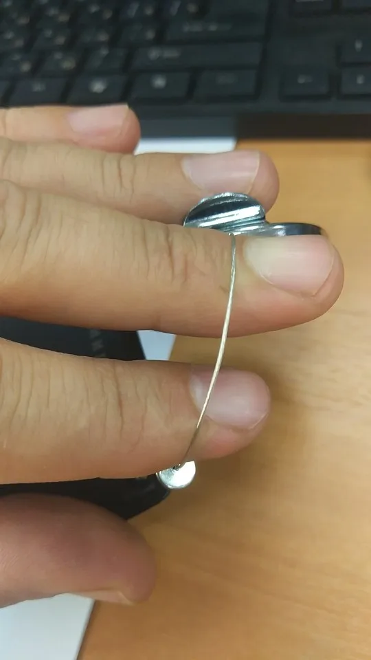 Внезапно здоровый диск, 4х1,5см, но металл прям радует (до этого два пластиковых сломались за неделю). Тросик внутри с силиконовой обливкой, может подольше проживёт. Доволен