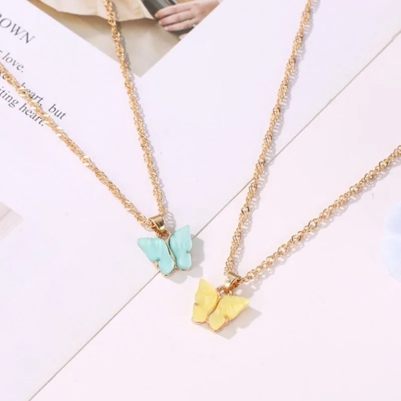 Ожерелье женское с подвеской в виде бабочки, золотистого цвета