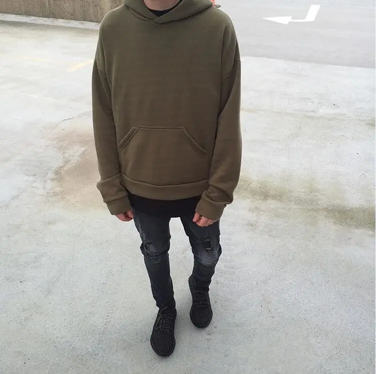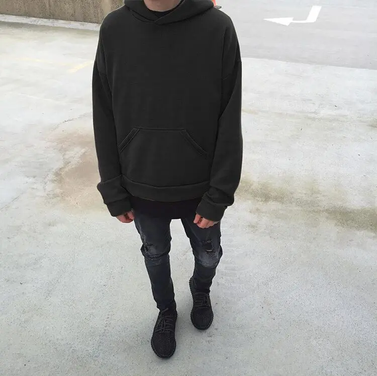 Высокое качество зима мужские Kanye West Толстовка в стиле хип-хоп Уличная мужская повседневная однотонная Свэг Свитшот оверсайз Vetements Толстовка