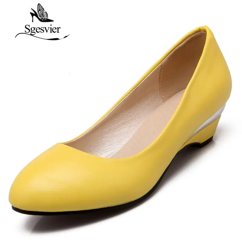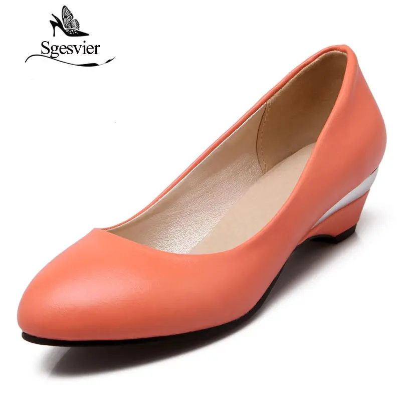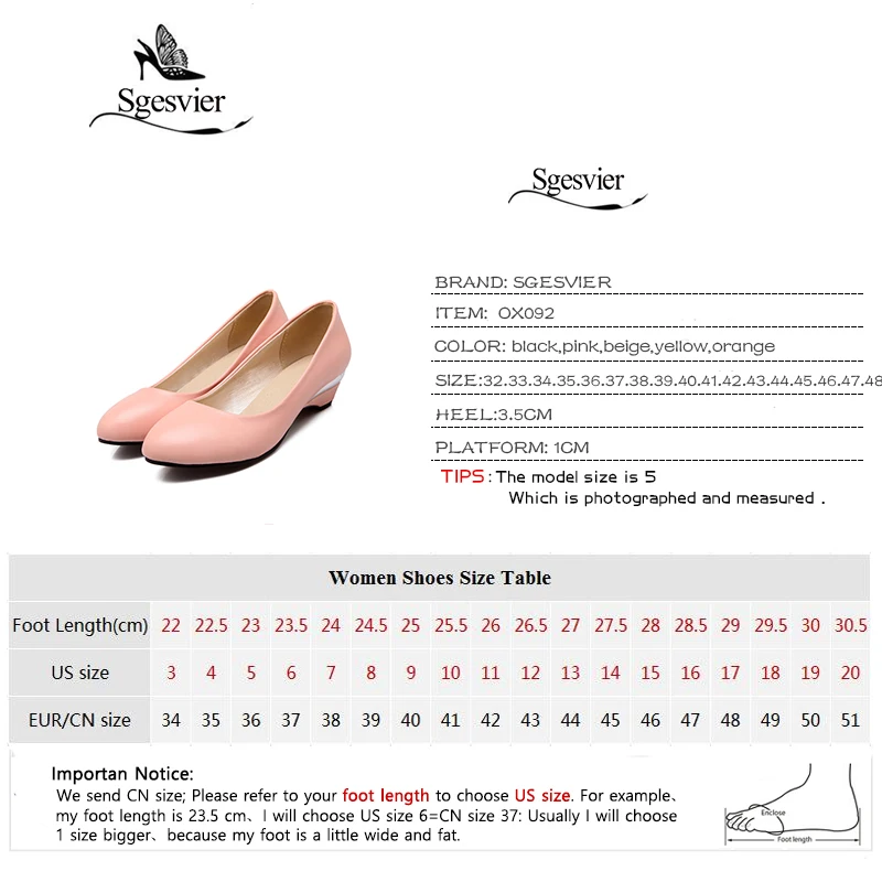 Женские туфли-лодочки на танкетке SGESVIER, Новинка осени 2017, Элегантные классические модельные туфли размера плюс, 32- 48, с круглым носком, на низком каблуке, женские туфли OX092
