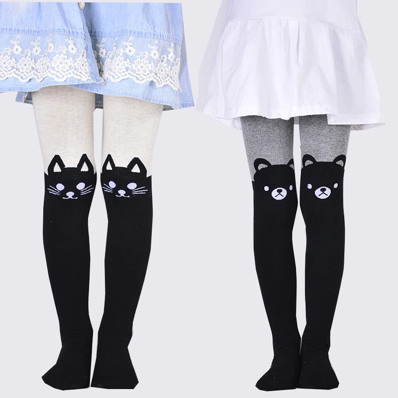 Весна-Осень 2020, трикотажные хлопковые милые детские колготки с мультяшным котом в стиле пэчворк, теплые колготки