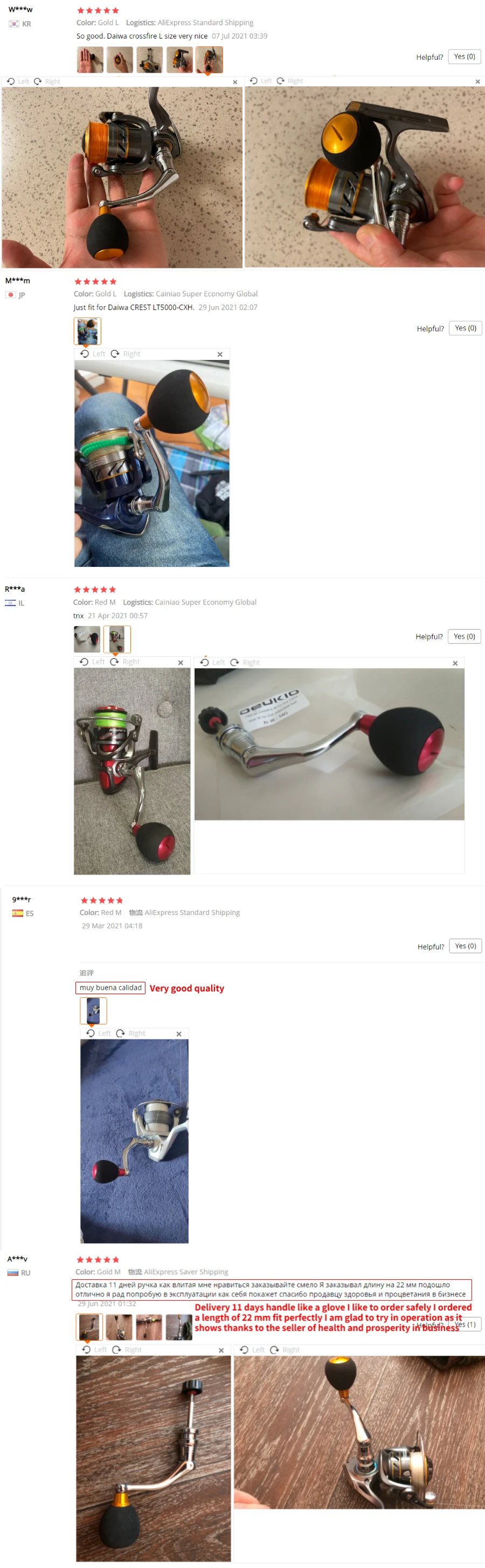 Продукт выглядит очень хорошо стеэтически и хороший материал, это идеальное измерение для моей Катушки 4000, я уже кладу его в картонную стойку; Только небольшая деталь. Шатун, который крепится к моей катушке, немного меньше, чем у катушки, поэтому он остается как маленькая игра, что делает рукоятку с небольшим движением, это не полностью исправлено. Он все еще может быть использован, с осторожностью, чтобы не надавить на Кривошип. Просто имейте в виду, когда покупаете.