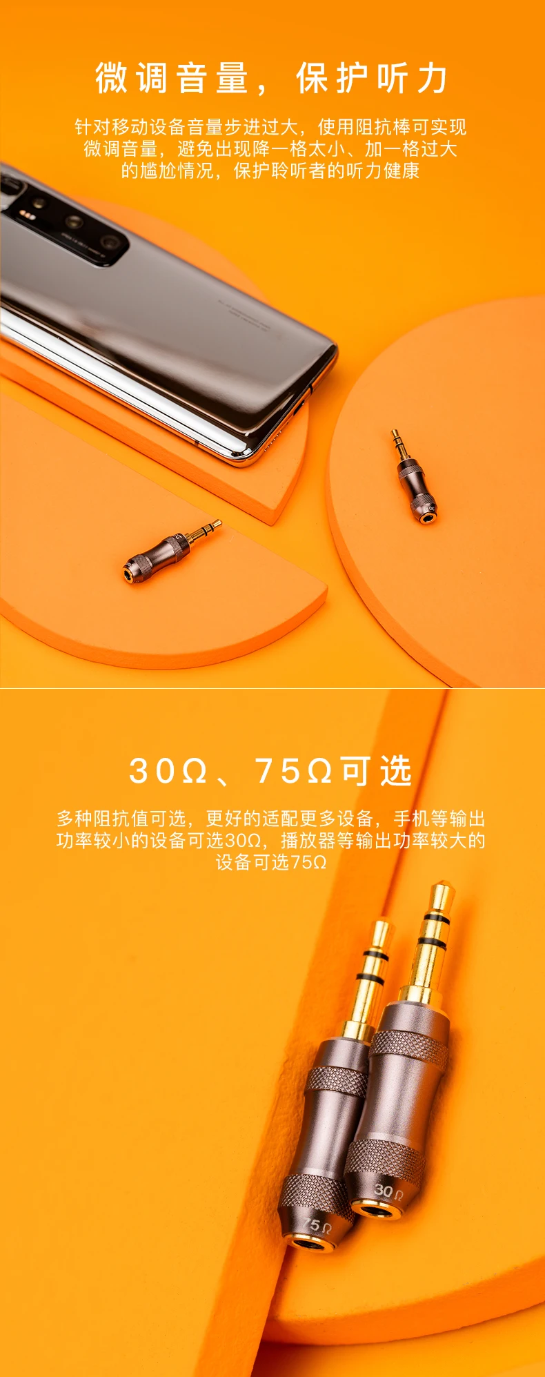 Адаптер сопротивления для наушников DUNU, 30 Ом, 75 Ом, 3,5 Ом, разъем мм, штекер шумоподавления для MP3, Hi-Fi плеера, смартфона, ПК, усилителя