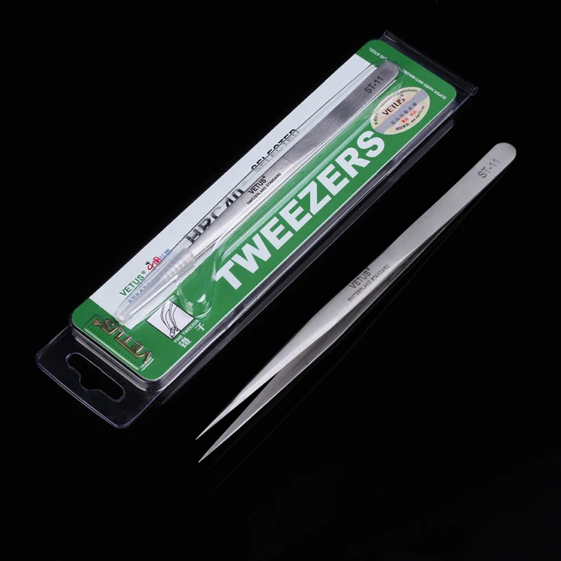 Пинцет VETUS TS-11 с прямым кончиком, антистатический, электронный, промышленный, точный, из нержавеющей стали, ручной инструмент сделай сам