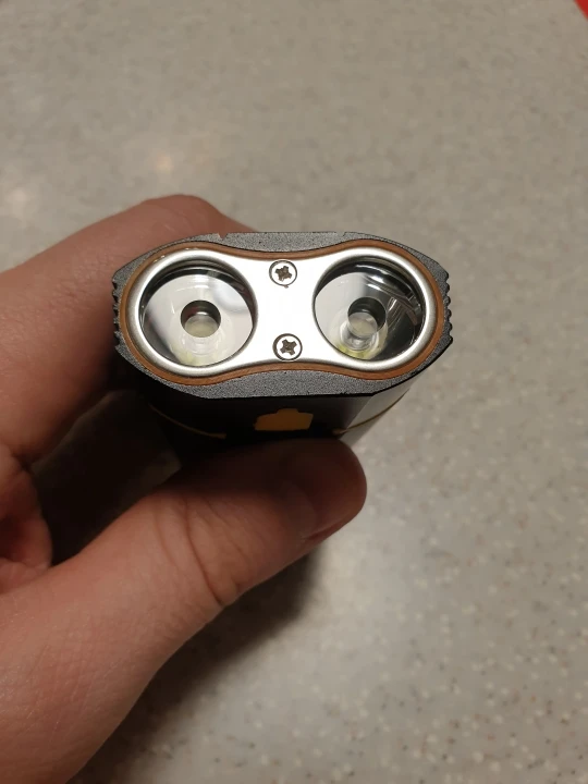 Светит люмен на 600, работает при зарядке. В комплекте пара батарей, type-c шнурок для зарядки. Минусовой контакт передается через болт крышки, соответственно, нет в этом месте нормальной изоляции от воды. Пружины для батареек с двух сторон.
