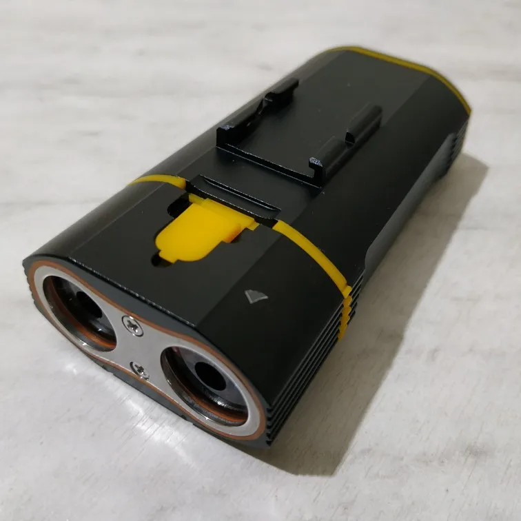 Честно, не ожидал, что фонарь окажется таким классным! И очень порадовала доставка за 3 дня! Видимо, не из Китая, а с местного склада в Москве. Что понравилось: фонарик сделан очень и очень качественно. Корпус целиком из алюминия. Берёшь в руку и маешь вещь! Тяжёленький, но такова плата за прочность. Удобное быстросъёмное крепление на руль и удобный фиксатор-защёлка. Очень здорово, что можно использовать аккумуляторы 18650, можно взять с собой несколько в многодневный автономный поход и быть ночью со светом. Что не понравилось: заявленными 6000 люмен даже и не пахнет (на это и не рассчитывал). Визуально сравнивал с имеющейся фарой Gaciron V9D-1600, которая на максимуме даёт 1600 люмен. Так вот, три непрерывных режима свечения данной фары соответствуют 200, 400 и 800 люмен. Переднее стекло даёт достаточно узкий пучок света, у Гасирона охват почти 180 градусов в стороны и 120 вниз и вверх. А у этой фары граница между светом и тенью достаточно резкая, что для езды на велосипеде нехорошо.