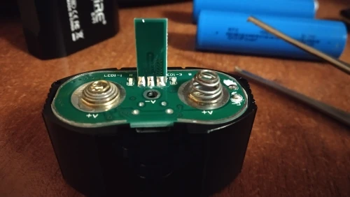 При получении фонарь работал нестабильно, думал аккум разряжается быстро, и болталось что-то внутри. Когда руки дошли, оказалось, что пружины недостаточно фиксируют банки 18650. После вытягивания пружин на плате стабильность вернулась в фонарь. Также по ходу обнаружились гнутые направляющие между корпусами, но я их не стал трогать, с трудом, но все сошлось.