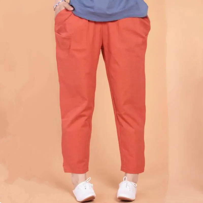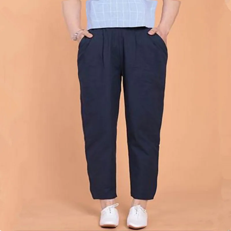 Брюки женские из хлопка и льна, свободные, винтажные, повседневные, с эластичной талией, 2021, 7XL, лето размера плюс