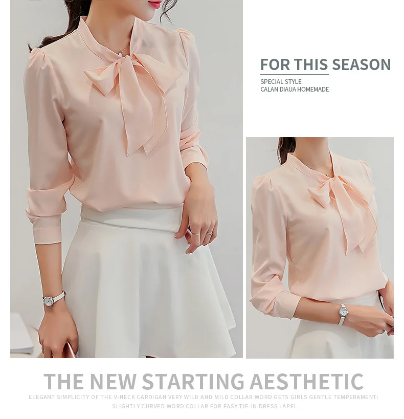 Русская мода Новая весенне-летняя блузка женские рубашки с длинными рукавами модные шифоновые рубашки для отдыха офисные женские топы розового и белого цвета