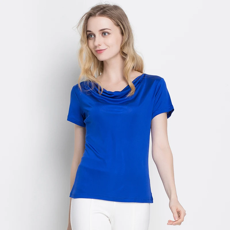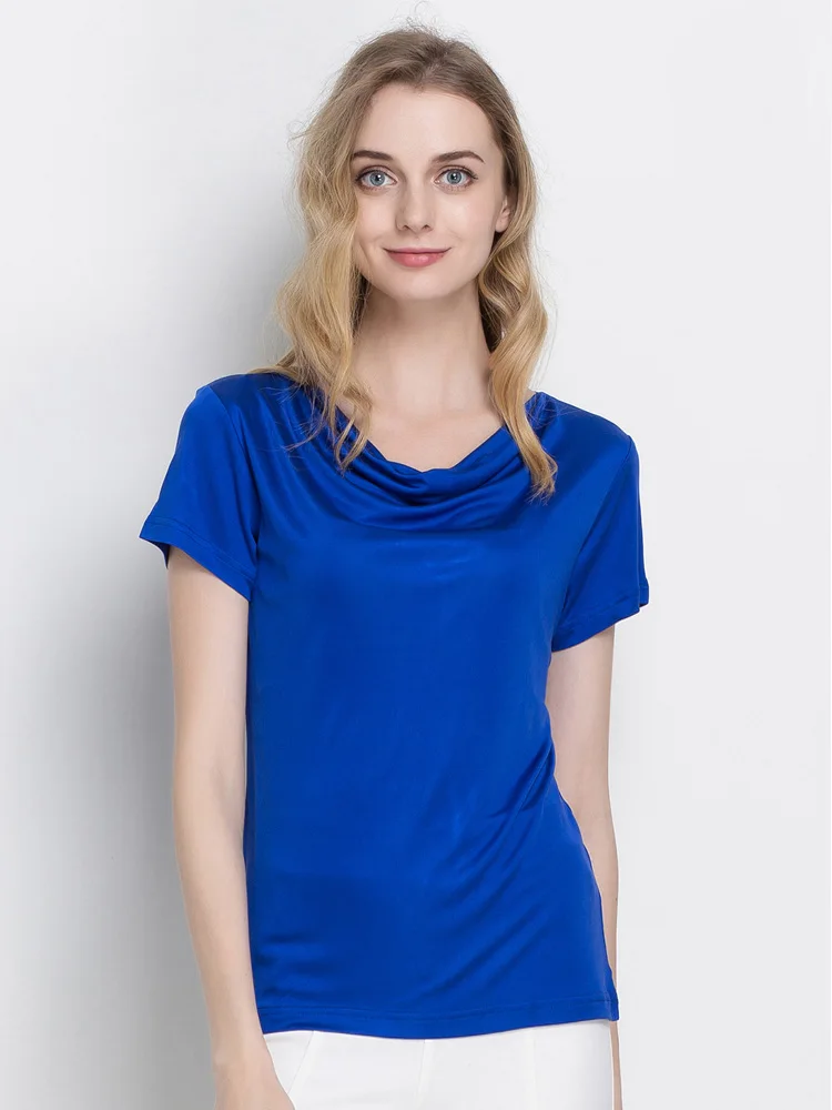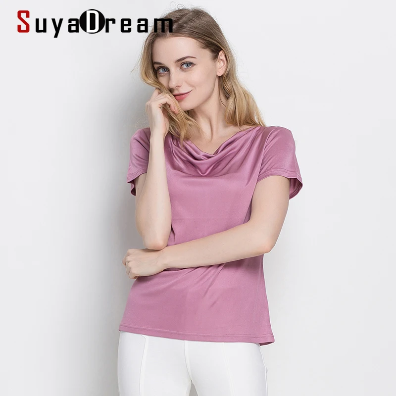 SuyaDream женская футболка натуральный шелк драпированный воротник с короткими рукавами плюс размер джемпер 2021 осень однотонный топ