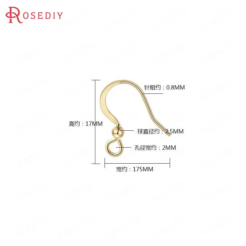 Крючки для сережек, латунные, с покрытием платинового цвета, цвет золото 24 К, 16-17 мм, комплектующие для ювелирных изделий сделай сам, аксессуары для сережек, 20 шт.