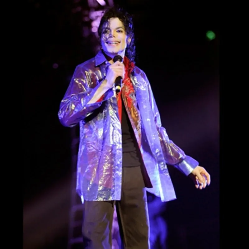 Редкий панк рок повседневная классическая MJ Переливающаяся фиолетовая Мерцающая органза пуговицы спереди это Рубашка Майкл костюм Джексон