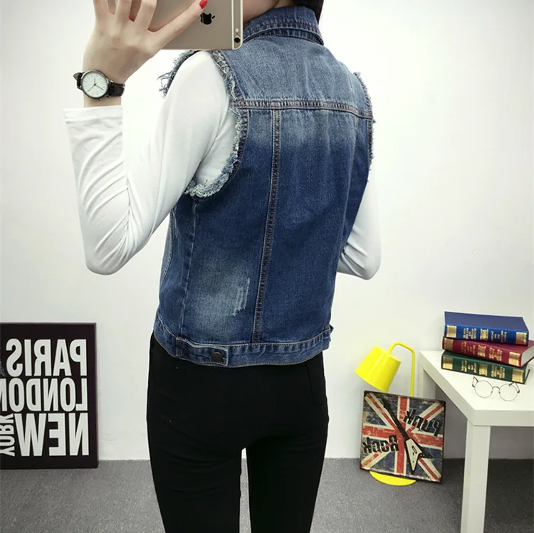 Жилет джинсовый женский Повседневный с отложным воротником, приталенный жакет из денима, большие размеры 5XL, безрукавный джинсовый жилет