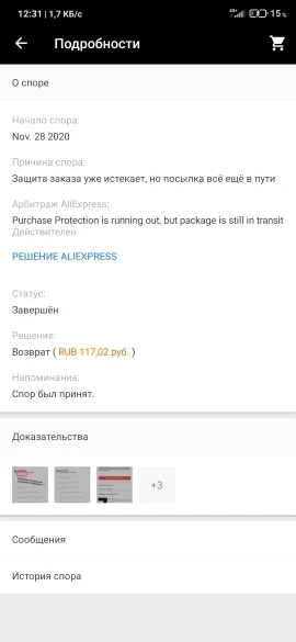 Заказ не получил, продал 2 месяца. Открыл спор на возврат средств. Продавец вернул деньги через несколько дней,кроме суммы доставки. Претензий нет)