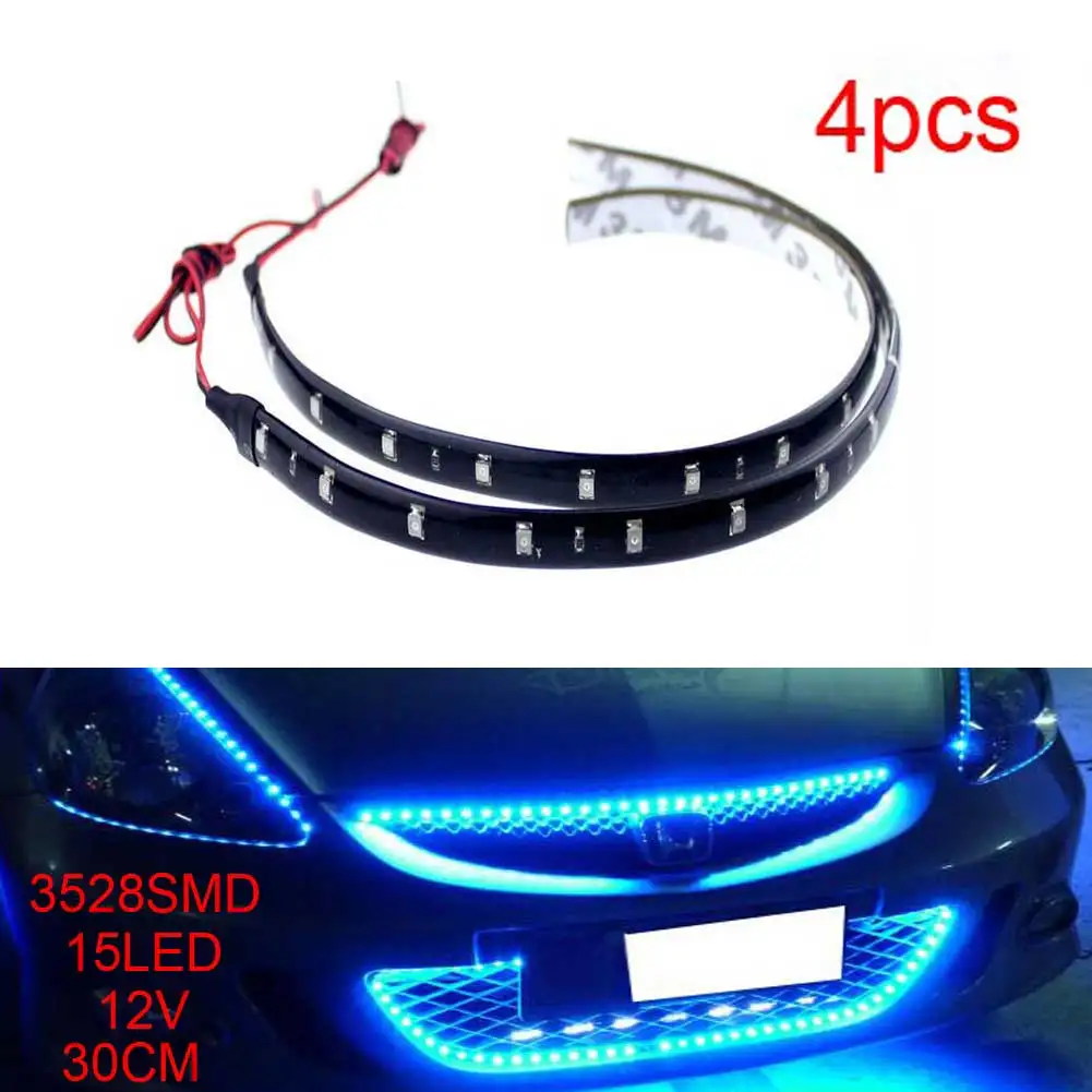Светодиодная лента, 15 светодисветодиодный, 4 шт., 12 В, для дневных ходовых огней, водонепроницаемая, 30 см, гибкая неоновая лента для украшения рекламы