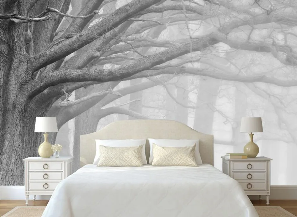 Фотообои на заказ, Туманный лес, настенное украшение для дома, черно-белое большое дерево, украшение для гостиной, спальни, 3d обои