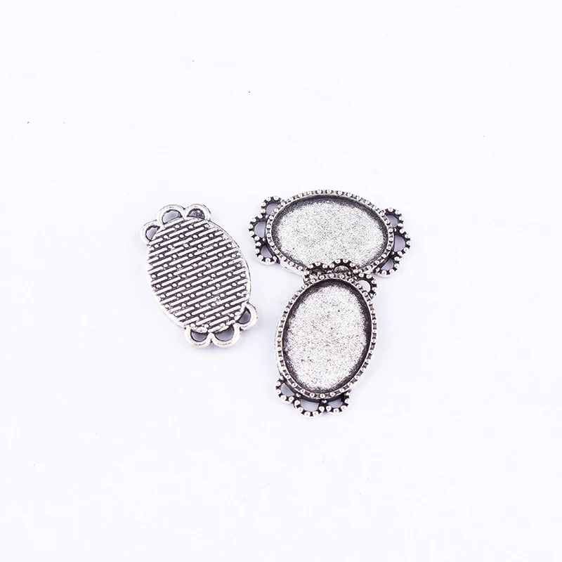 Подвеска 18x13 мм с двойными петлями, подвески из античного серебра, оправа, кабошон, основа для камеи, рамка, пустые ювелирные изделия сделай сам
