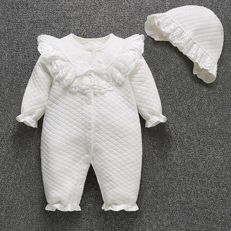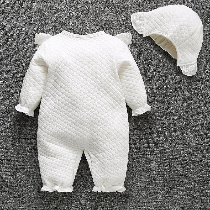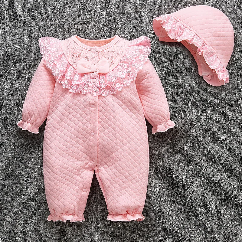Зимняя одежда для новорожденных девочек хлопковый утепленный комбинезон комбинезоны принцессы с бантом комплект одежды для девочек Комбинезон + шапки