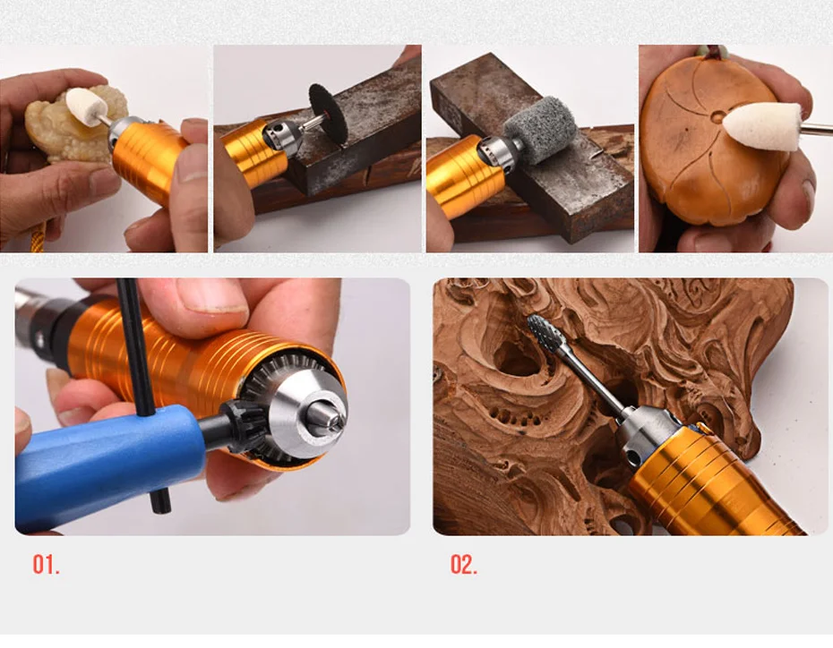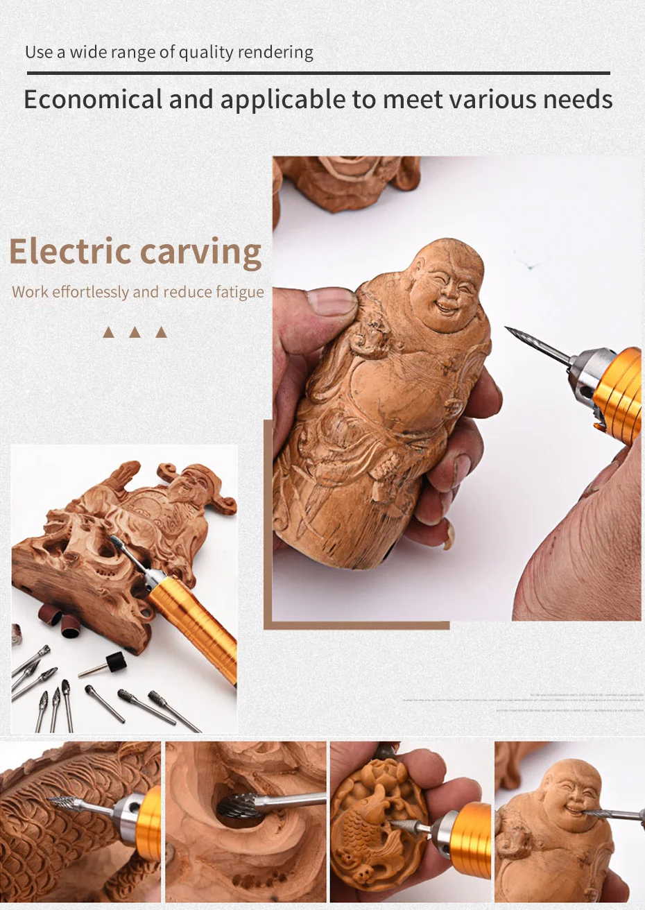 В основном используется для резьбы по дереву, мебели, резьбы по старинному полу, горшка, игрушек, фигурок, животных и других скульптур;
