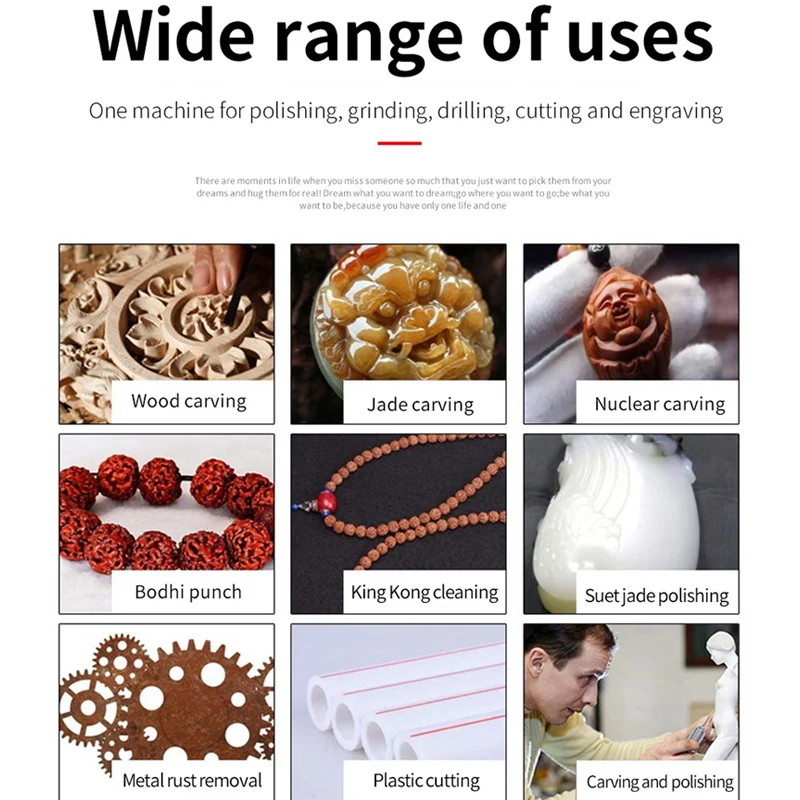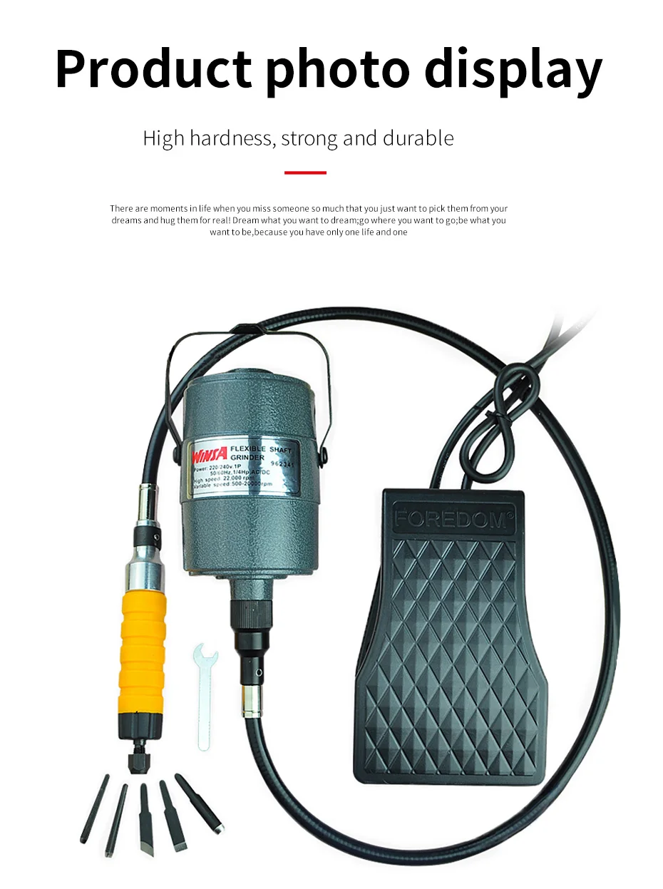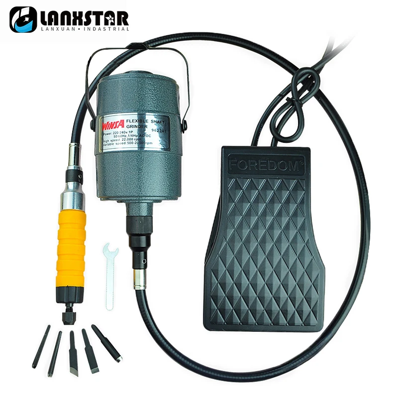Применение/Спецификация:* Работает для отклонения мусора в различных приложениях;LANXSTAR* Экран можно быстро отрегулировать по месту, обеспечивает легкий доступ к аксессуару и не мешает заготовке;* Спецификация./параметры: Стандартный регулируемый диапазон патрона: 0,1 ~ 4,0 мм;Мощность: 380 Вт;Скорость: 22000об/мин (без ножной пластины);500 ~ 15000об/мин (бесступенчатое регулирование скорости педали).В дополнение к общей древесине, также изделия из резного черного дерева, мягкий пластик и т. д.Корпус прочный, Теплоотдача охлаждения отличная, очень безопасная.