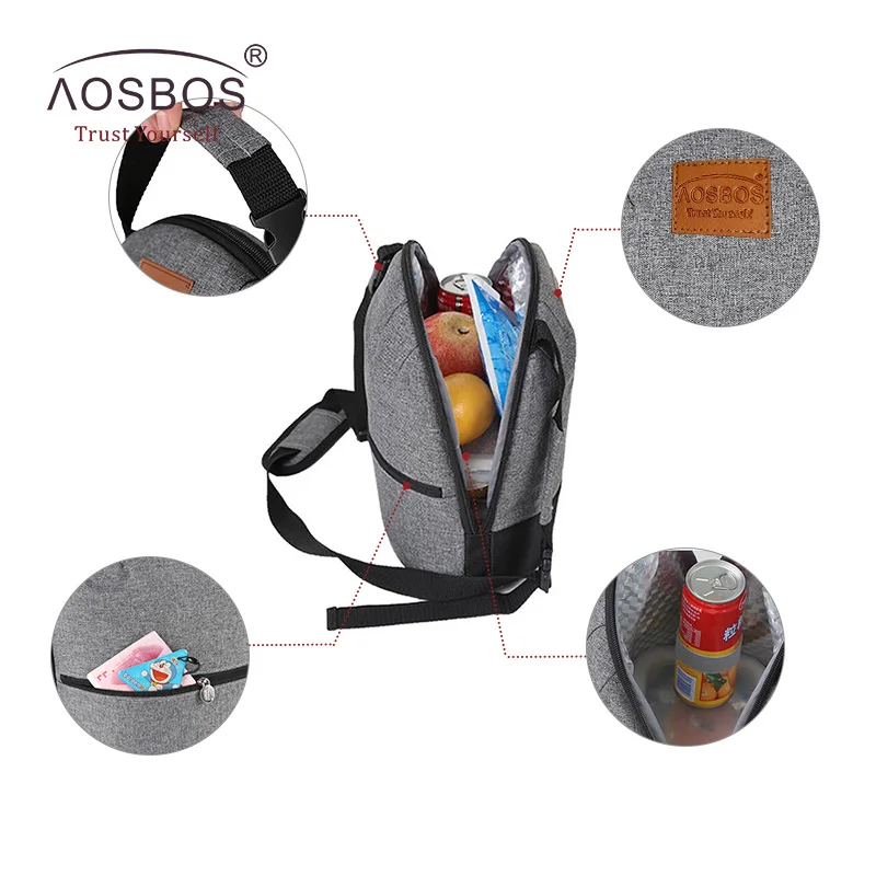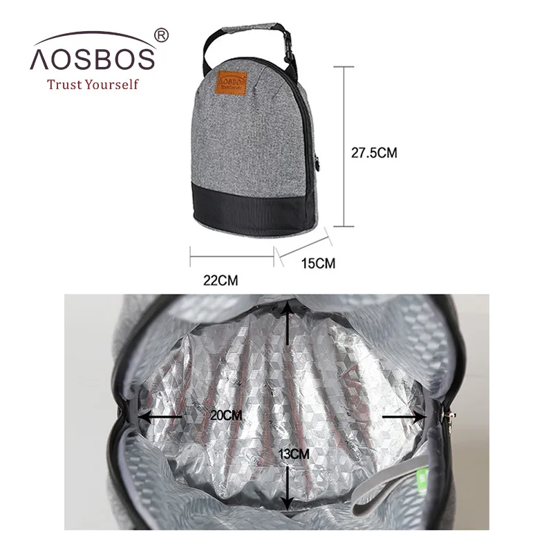 Aosbos Оксфордские Изолированные сумки для обедов для женщин и детей Портативные серые термальные коробка-сумка для обеда мужские пищевые сумки для пикника охладитель бенто Сумка-тоут