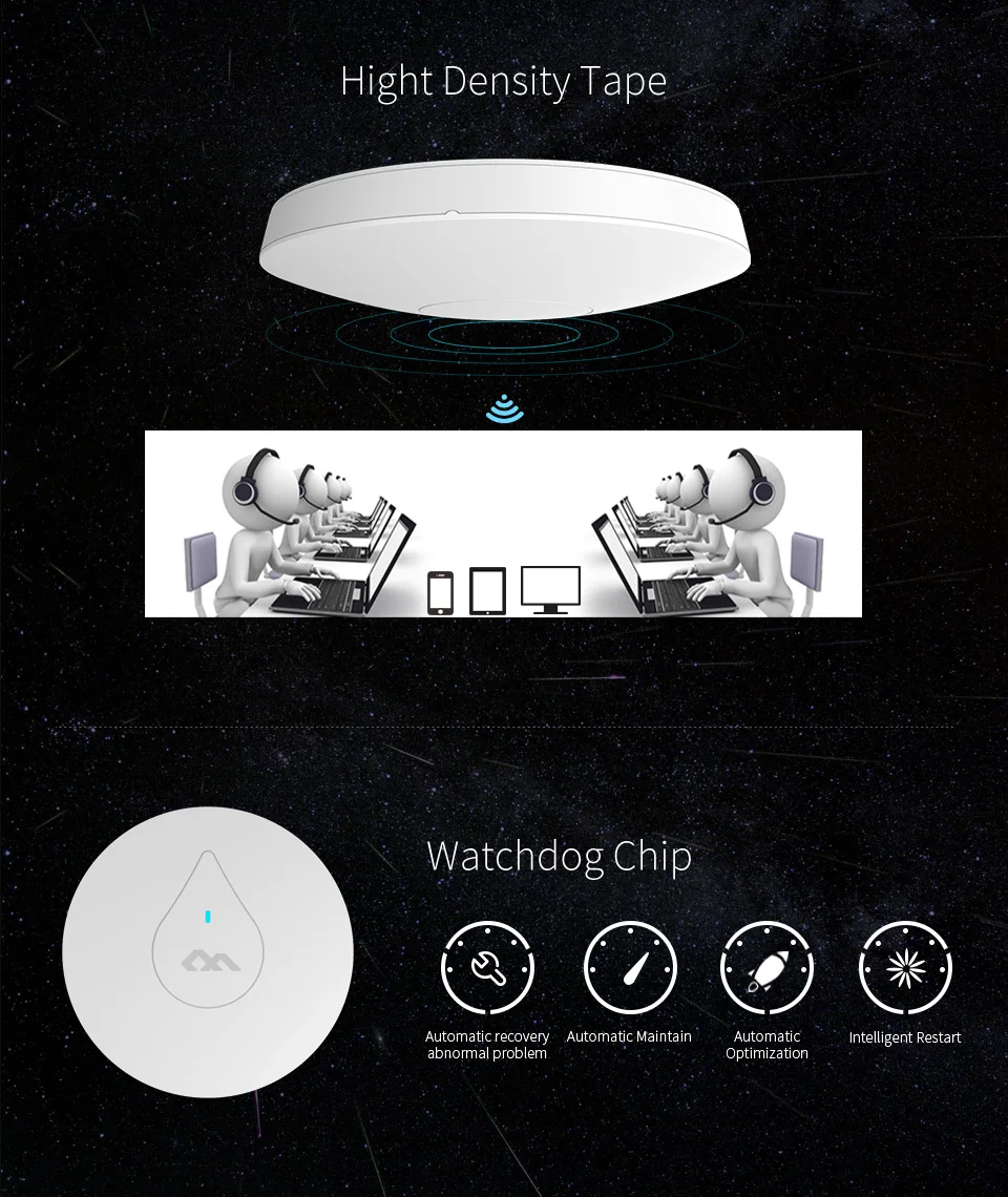 -Поддержка 60 пользователей, подключенных в то же время; Внешняя высокопроизводительная независимая схема усилителя мощности (PA) и малошумная схема приемника усилителя мощности (LNA), обеспечивающая 27dBm (500 МВт) мощность передачи-96dBm чувствительность приема, используя 48V стандартный POE источника питания. Максимальное расстояние может достигать 100 метров, подходит для использования в больших помещениях.