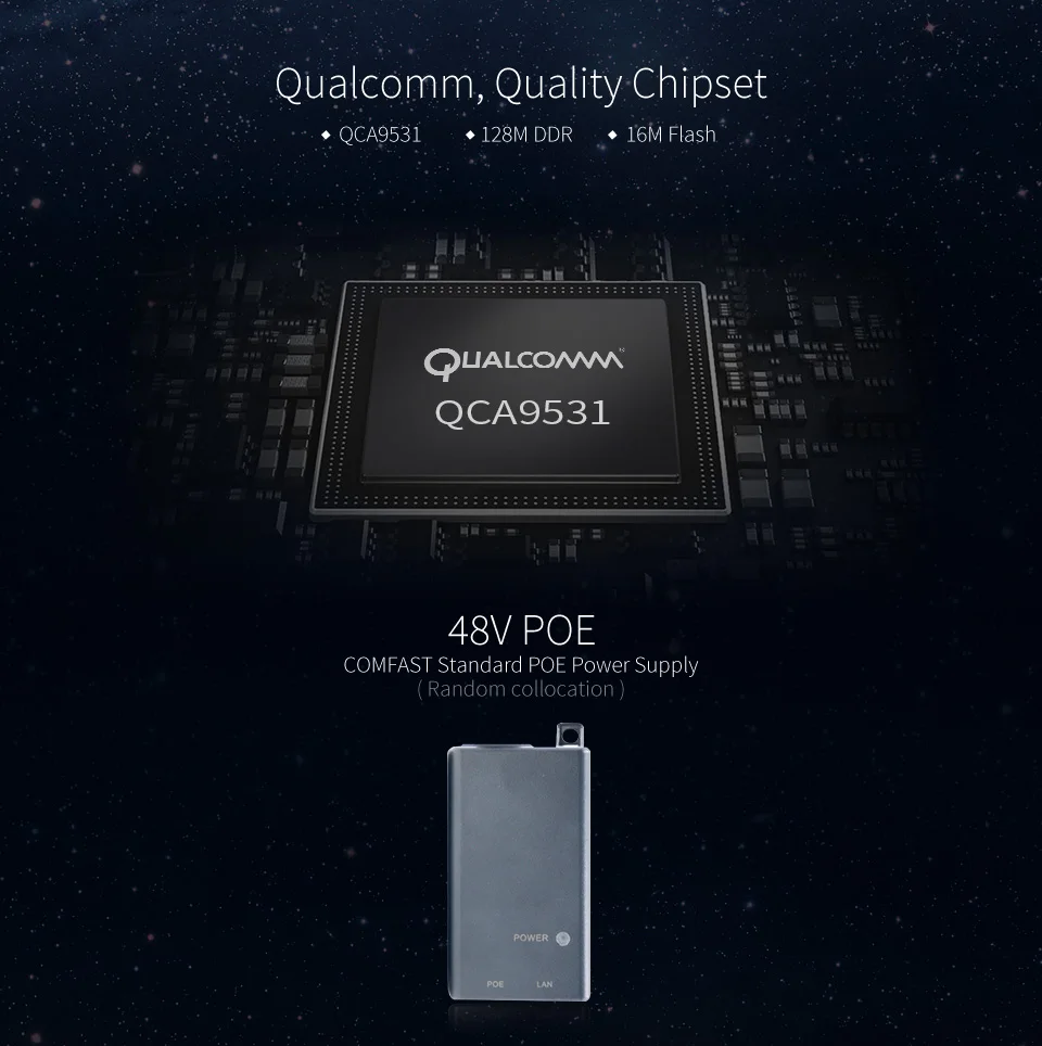 -- CF-E350N использует промышленный процессор Qualcomm QCA9531, оснащенный высокоскоростной памятью объемом 128 Мб, обеспечивает мощные возможности передачи и обработки данных; Беспроводная технология 802.11n MIMO обеспечивает скорость беспроводной передачи данных 300 Мбит/с, внутренняя двойная поляризованная антенна с высоким коэффициентом усиления, более широкая крышка сигнала.