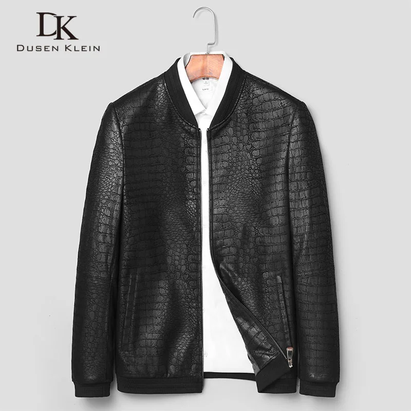 Мужские кожаные куртки Dusen Klein, пальто из натуральной овечьей кожи с крокодиловым узором, J1718