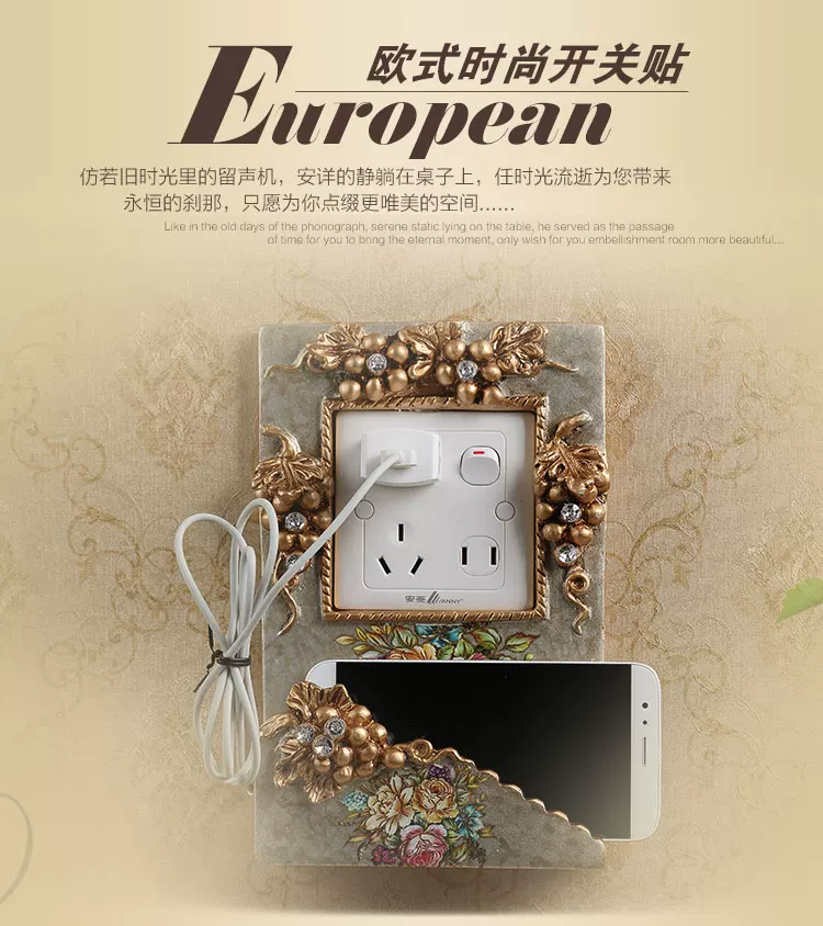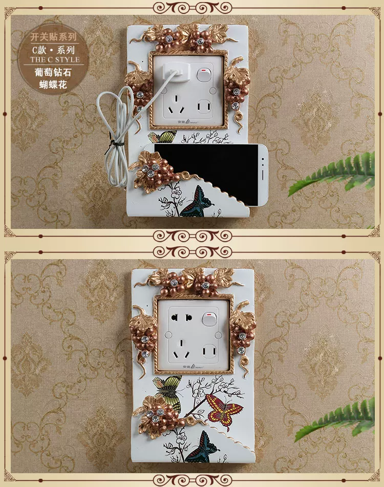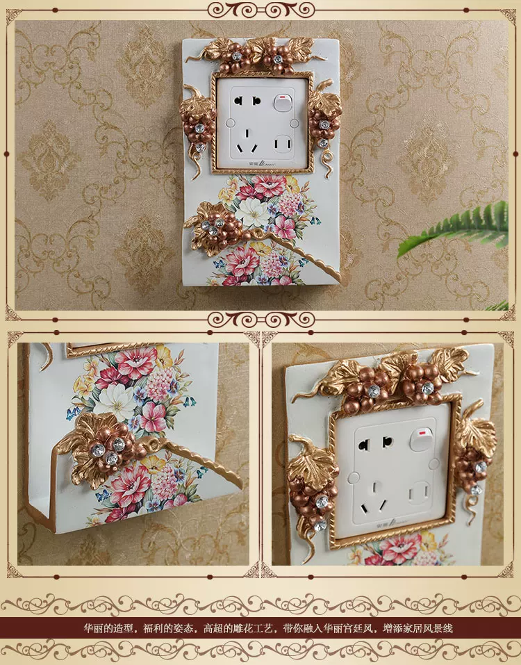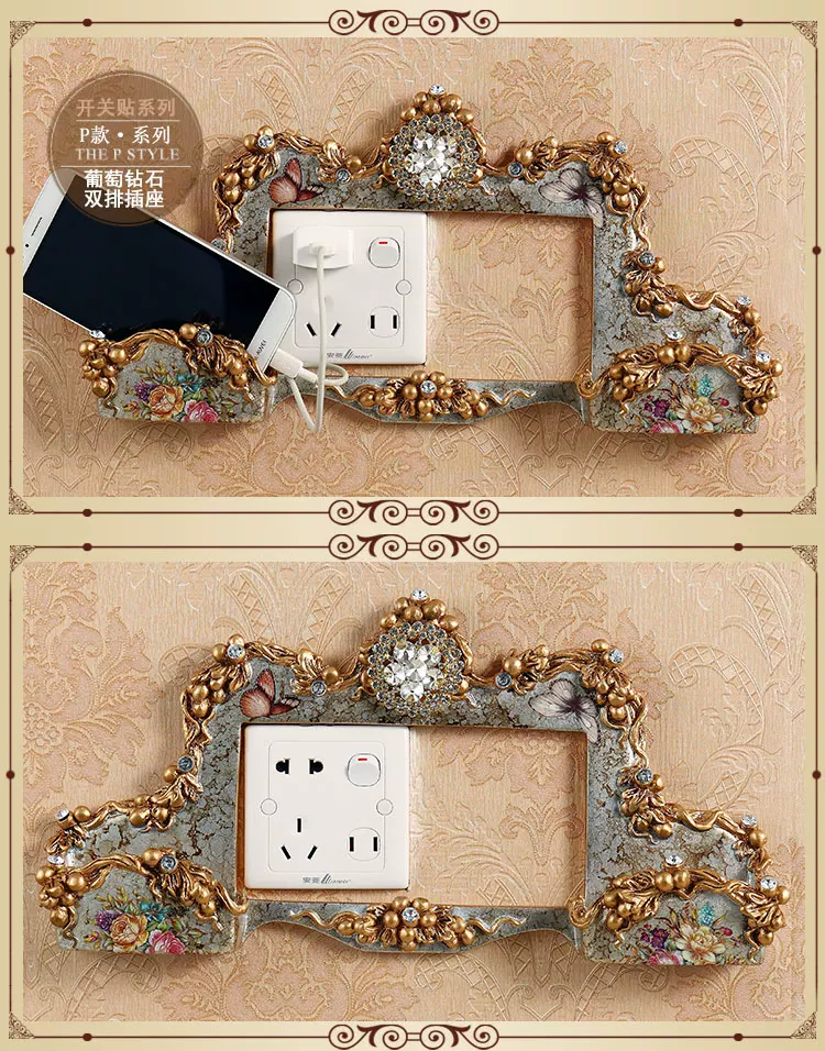 Европейские и американские роскошные наклейки на выключатель, аксессуары для интерьера, рамка из смолы, настенная розетка с c