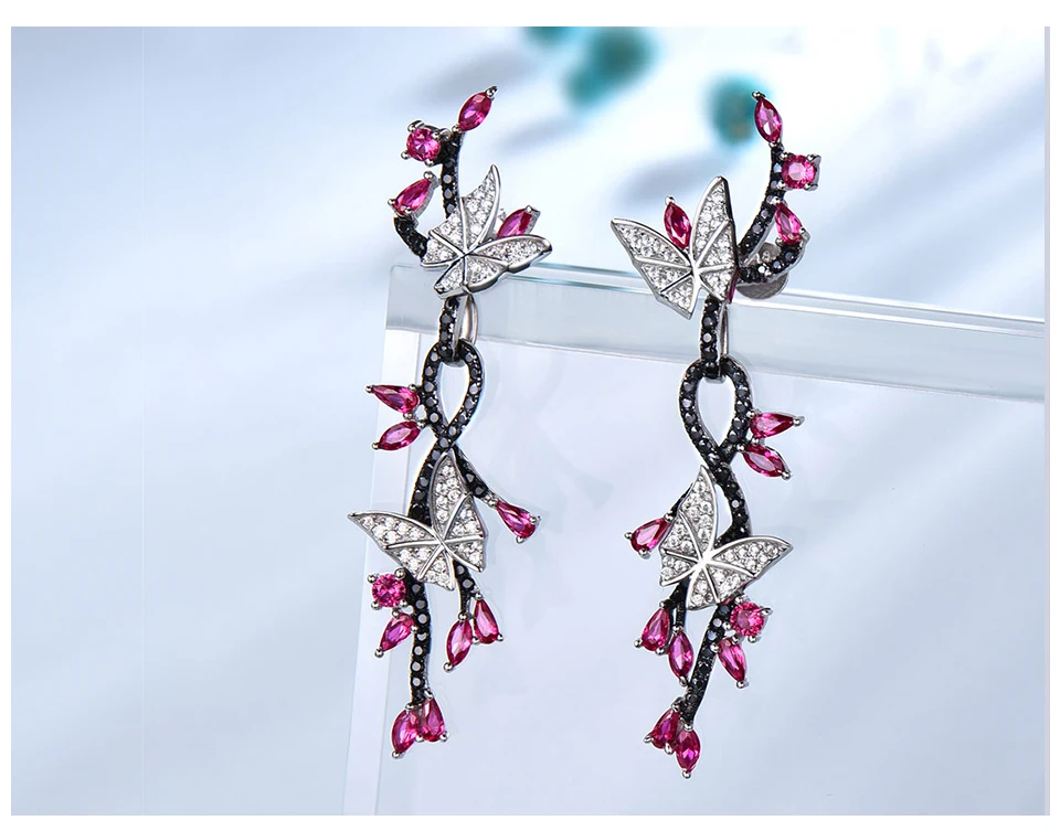 Женские Висячие серьги UMCHO из стерлингового серебра 925 пробы с бабочкой, натуральным драгоценным камнем, Черный шпинель, рубин, винтажные Романтические свадебные украшения