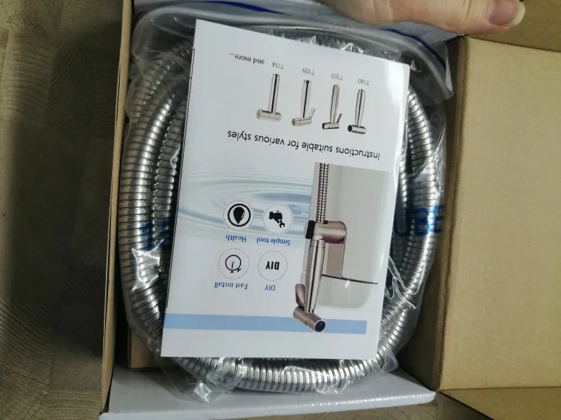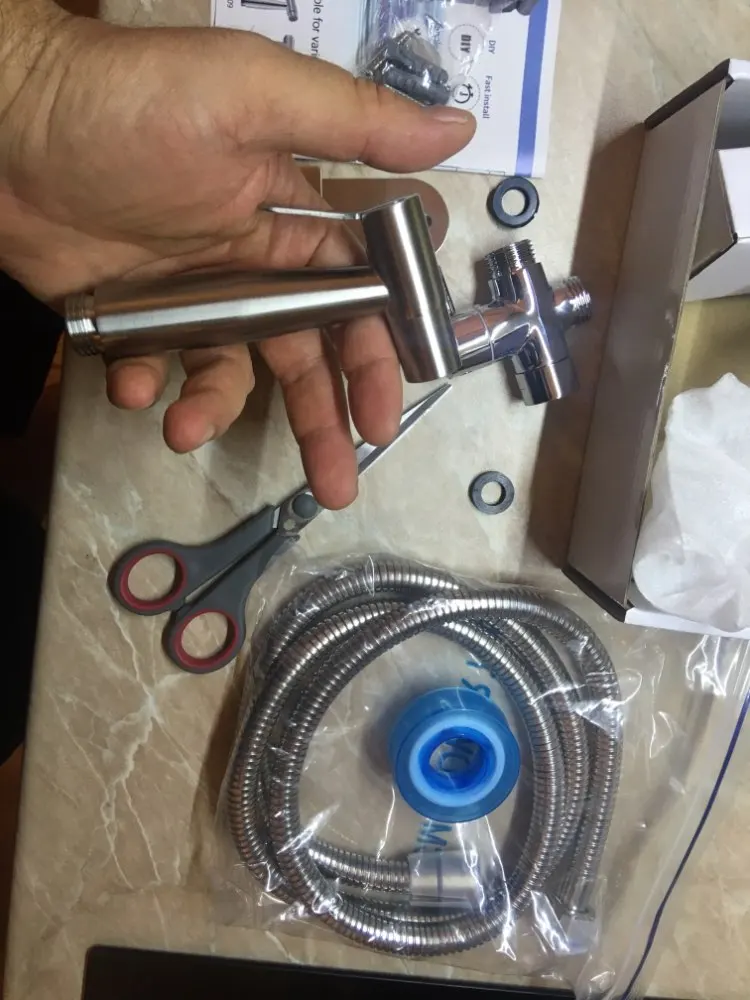 Привет, получил мой набор туалетных распылителей. Очень доволен комплектом, все включено для стандартной установки резьбой 1/2 дюйма BSP. Мне нужно было только купить шланг от клапана до туалета, длиной около 30 см. Спрей от ручного распылителя очень мощный даже с 2 бар давления воды. Я настоятельно рекомендую этот набор, чтобы быстро помыть область туалета и объяснение качества. Спасибо.
