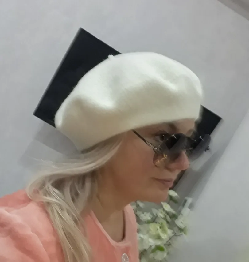 Первый берет который заказывала белый хороший, а этот качество хорошее но пришёл другой внутри с резинкой. Не поняла ????