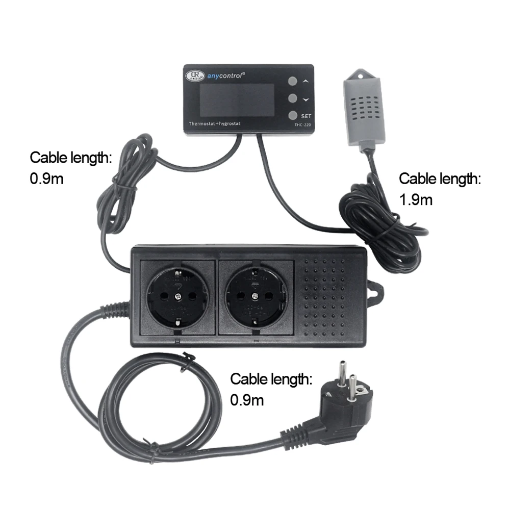 Цифровой контроллер температуры и влажности, реле, термостат, гигростат, регулятор 220 В 10 А, THC-220EU, Синий ЖК-дисплей, вилка ЕС