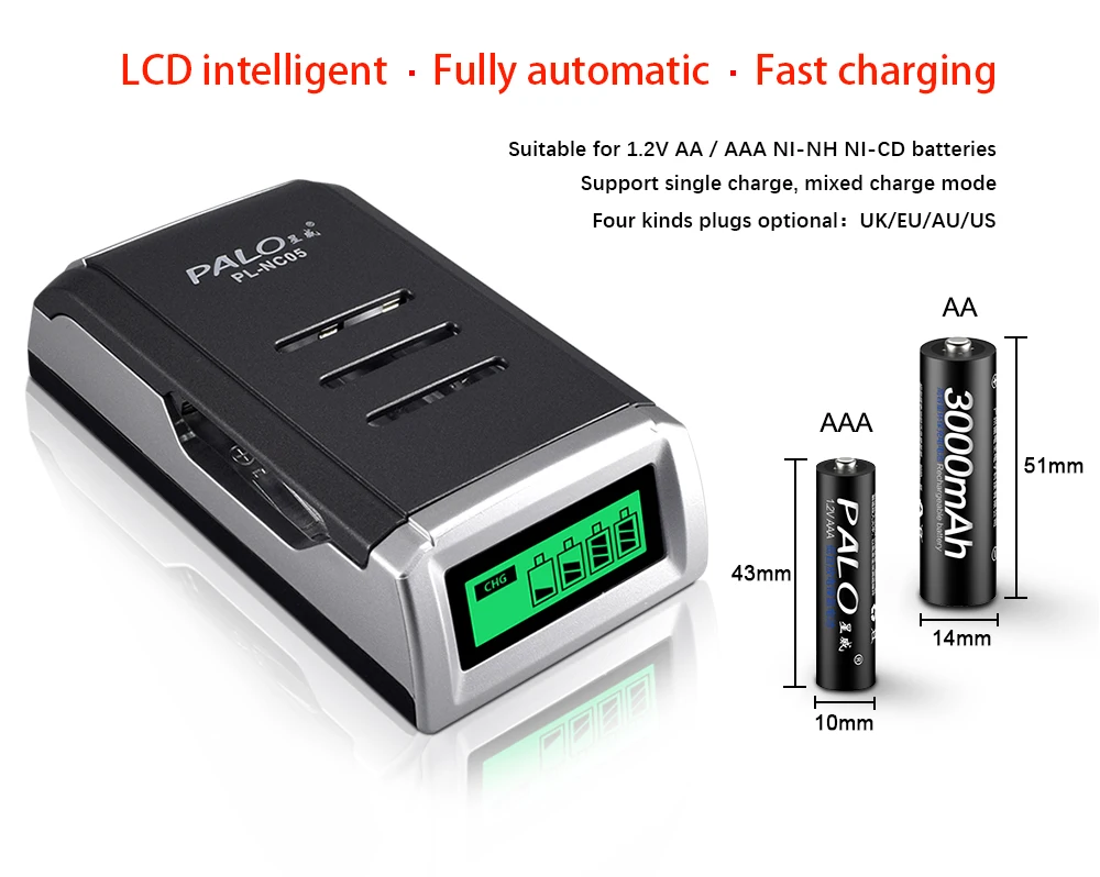 PALO 8 шт. 3000 мАч AA аккумуляторная батарея + LCD интеллектуальное зарядное устройство для AA AAA Ni-CD Ni-mh аккумуляторная батарея AA