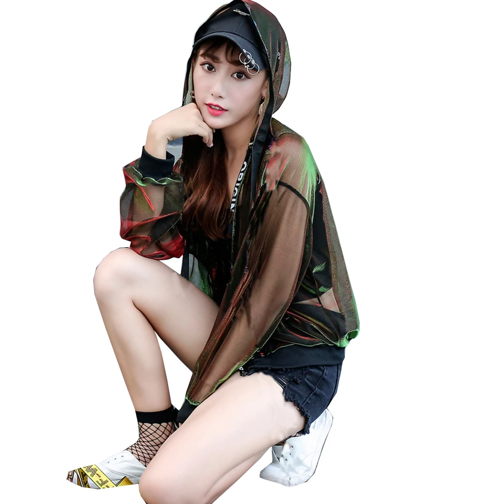 Летняя праздничная одежда Rave, одежда, голографические женские толстовки, наряды, Женская голографическая Радужная металлическая сетчатая куртка, одежда