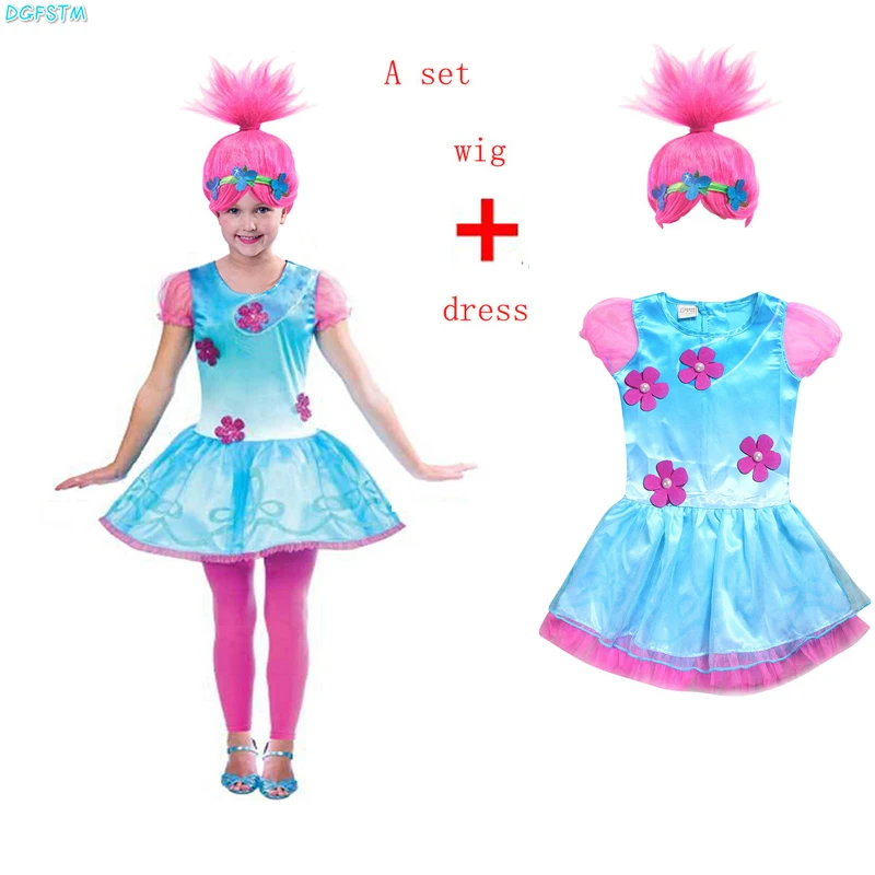 Розничная продажа, женский комплект одежды, детские костюмы для девочек, карнавальные детские костюмы, платье, одежда для троллей, маковая вечерние, платье для вечеринки