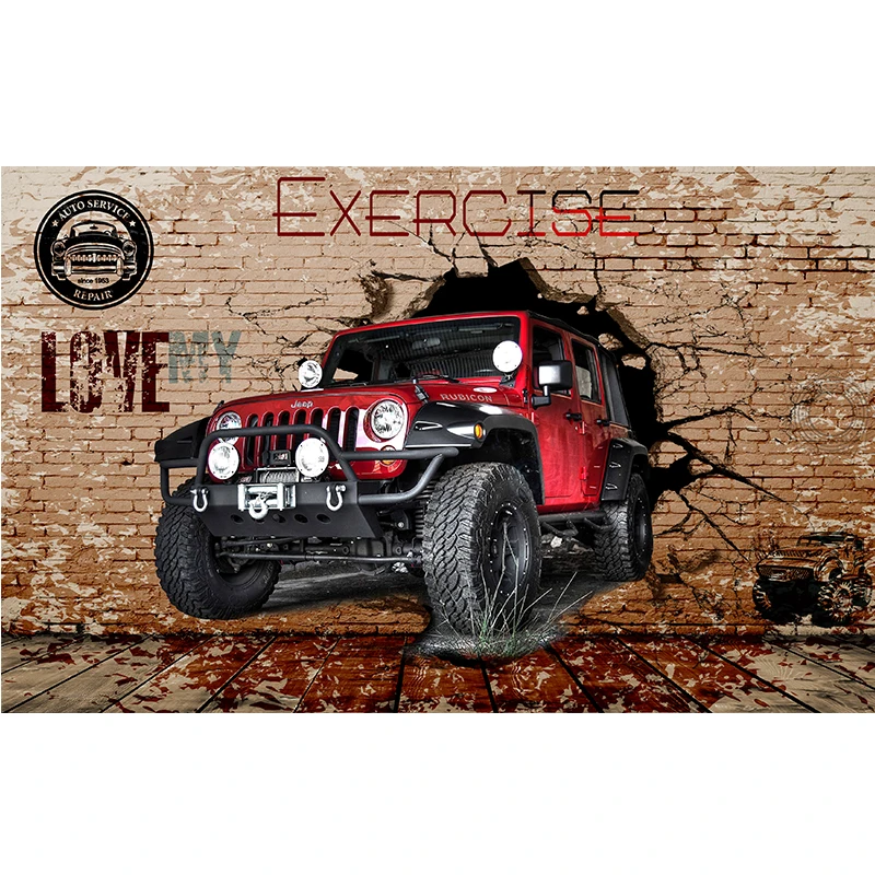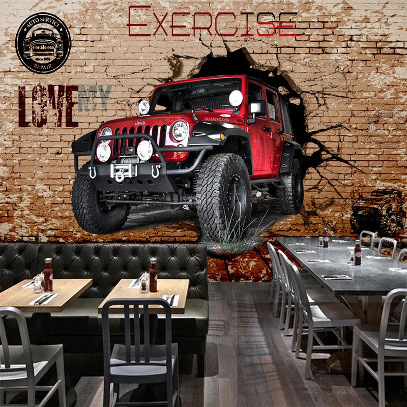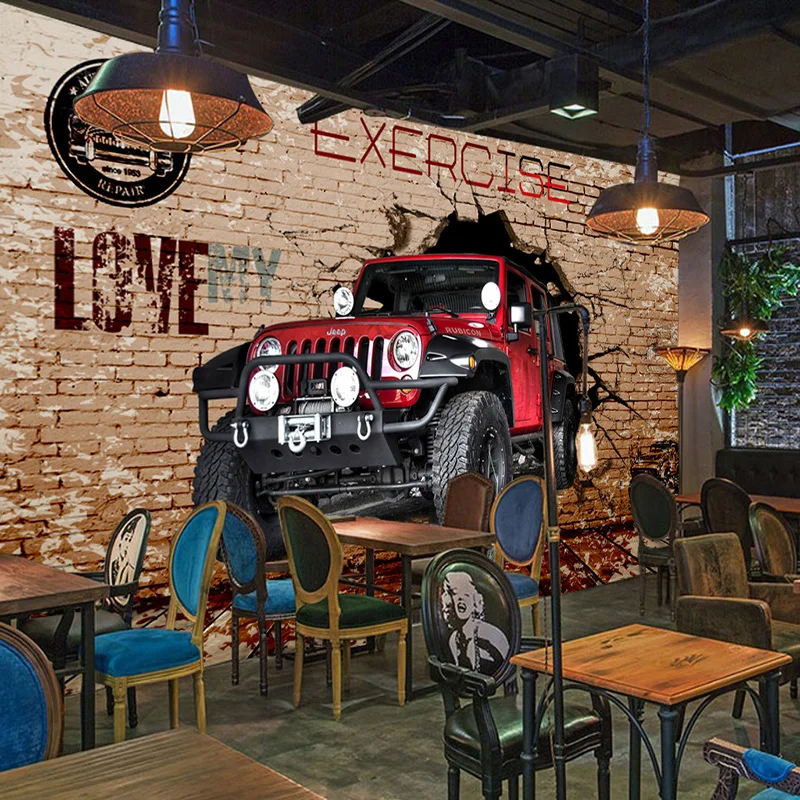 Персонализированная 3D стерео красная машина, сломанная стена, кирпичная стена, обои для кафе, ресторана, детей, спальни, индивидуальная 3D настенная живопись