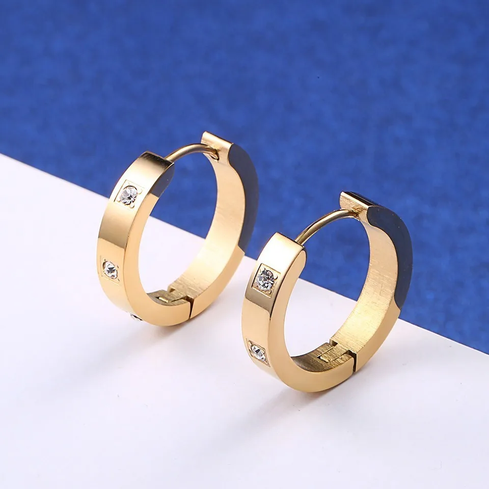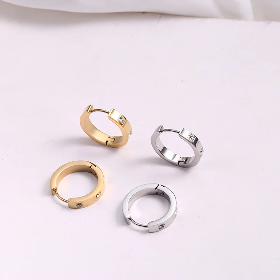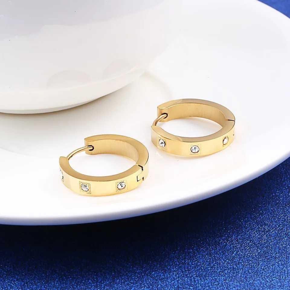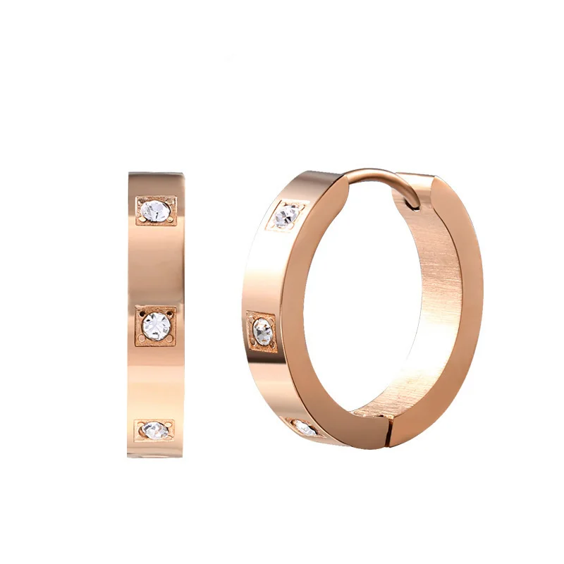 Серьги-кольца женские из розового золота крошечный Циркон пробы с фианитами