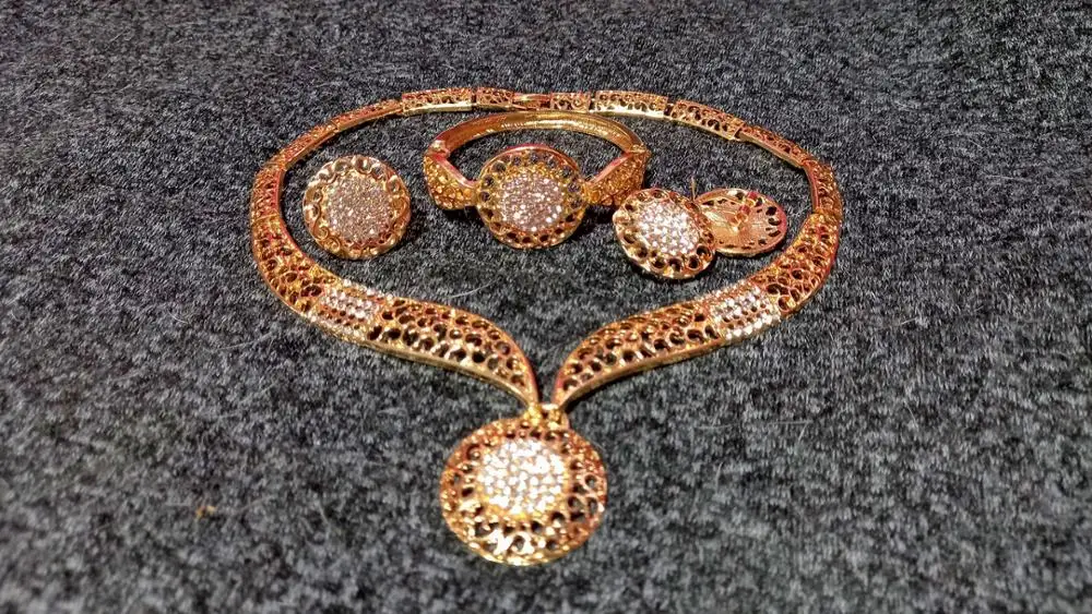 Комплект золотых ювелирных украшений из Дубая, комплект эфиопских ювелирных украшений с кристаллами, стразы в африканском стиле