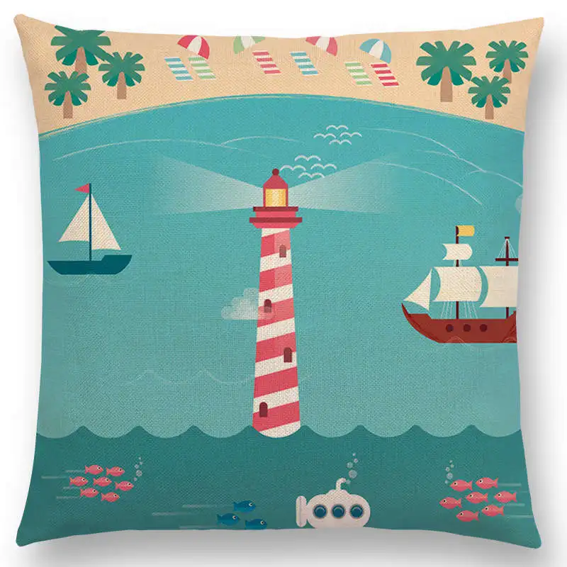 Чехол на подушку с изображением черепа, якоря, акулы, серфинга, оле...