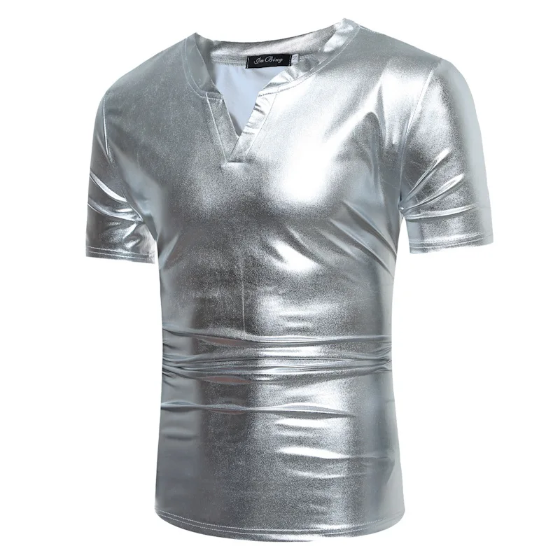Футболка мужская блестящая с золотым покрытием металлик, Клубная Облегающая рубашка с коротким рукавом, Повседневная в стиле хип-хоп, 2017
