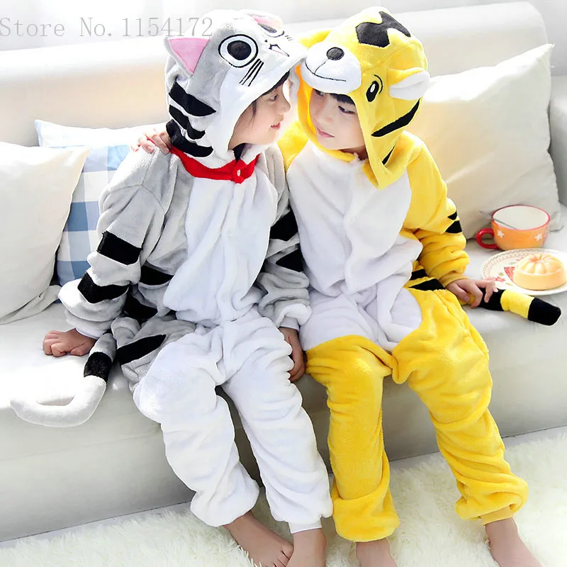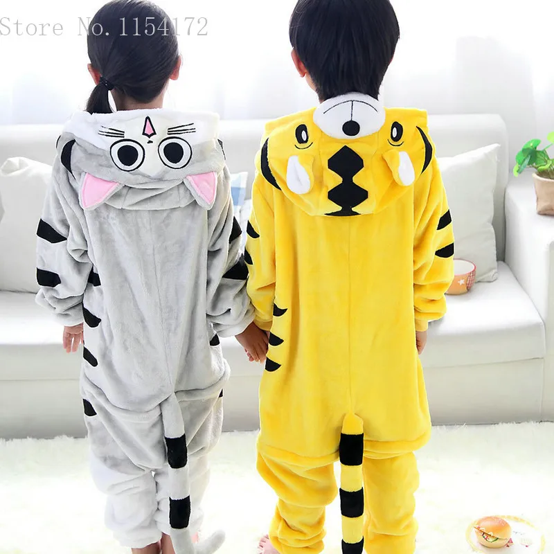 Кигуруми одежда тигр животные пижамы Кот костюмы унисекс детская одежда для мальчиков девочек фланелевая одежда для сна халат комбинезон Пижама