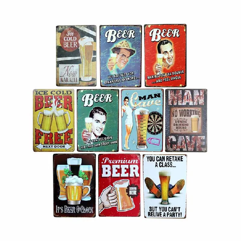 Винтаж олова знаки пива античные декоративные металлические бляшки ...