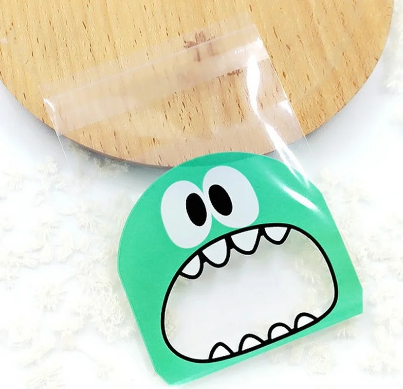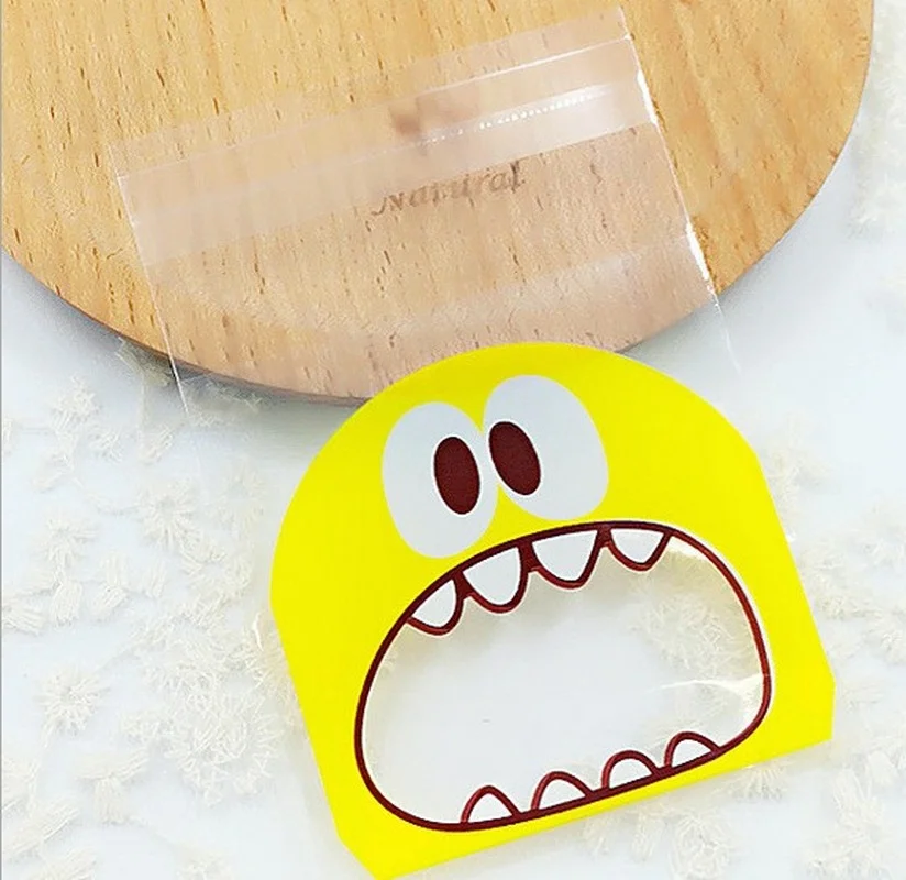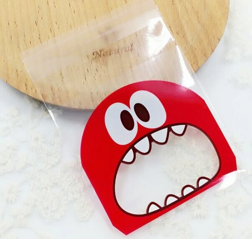 100 шт. 7 см милая маленькая острые зубы в виде монстра для выпечки, рождественские подарочные пакеты, пластиковые пакеты для конфет