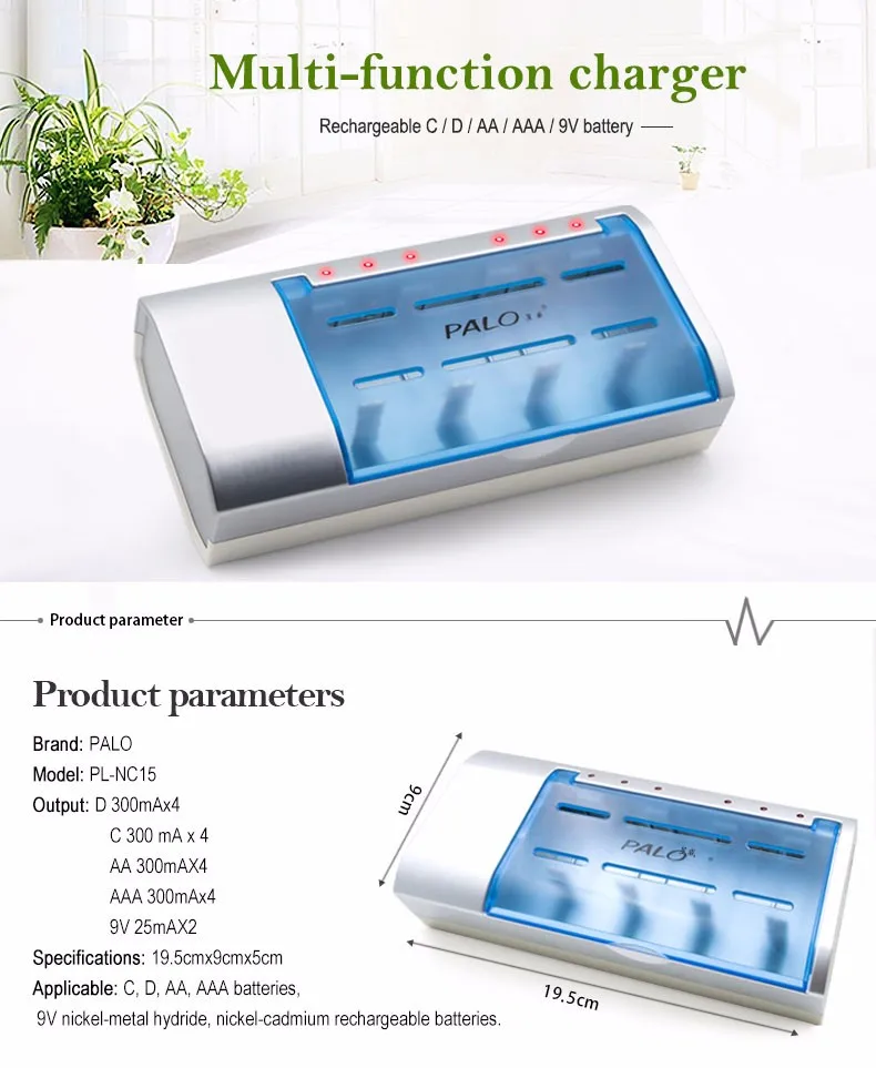 Многофункциональное зарядное устройство PALO для никель-металлогидридных аккумуляторов 1,2 в, NiCD, AAAAACD, 9 В + C
