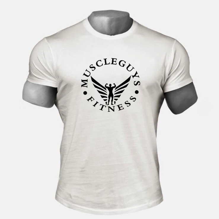 Muscleguysмодные футболки для мужчин; Одежда для бодибилдинга; Хлопковая летняя брендовая футболка; Мужская Повседневная футболка с короткими рукавами; Футболка для тренажерных залов