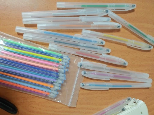 14 ноября я разместил заказ, и посылка прибыла 18 декабря 2020 года, товар в точности как в описании, приходит правильное количество, они не очень красивые физически, но они служат тому, для чего они были разработаны. Некоторые пришли запятнанными качеством кофе. Они прибыли хорошо упакованными и не имеют повреждений. Качество не самое лучшее, у них много заусенцев. Что-то, что мне совсем не нравится, так это то, что я едва вижу, какой цвет чернил на минах, которые я надел. В целом они в порядке, они удобны в сцеплении и выполняют свое предназначение.